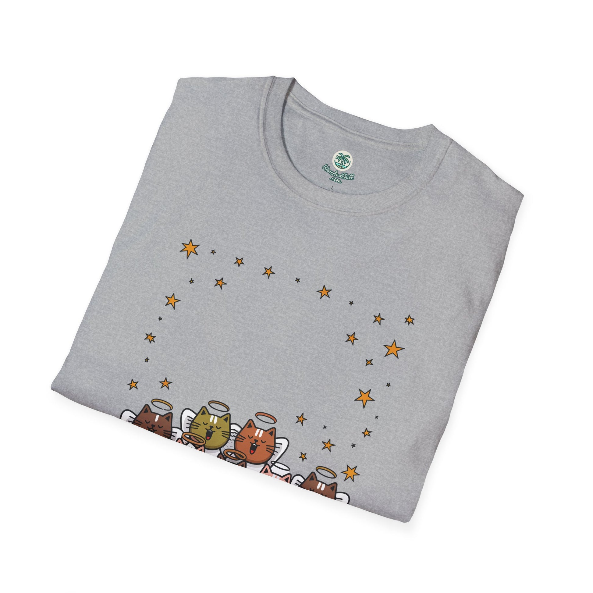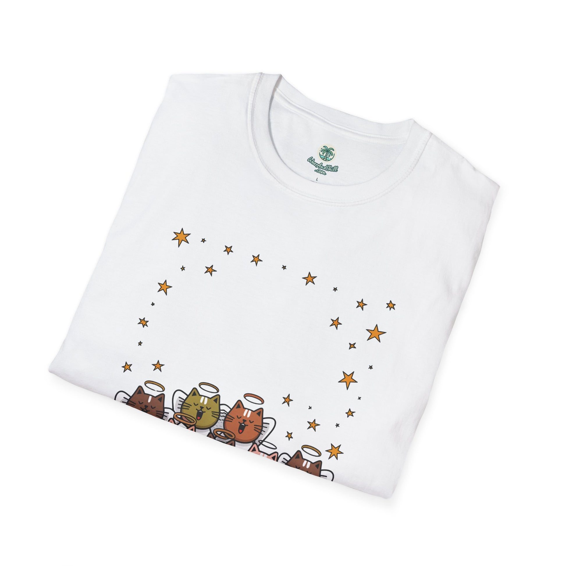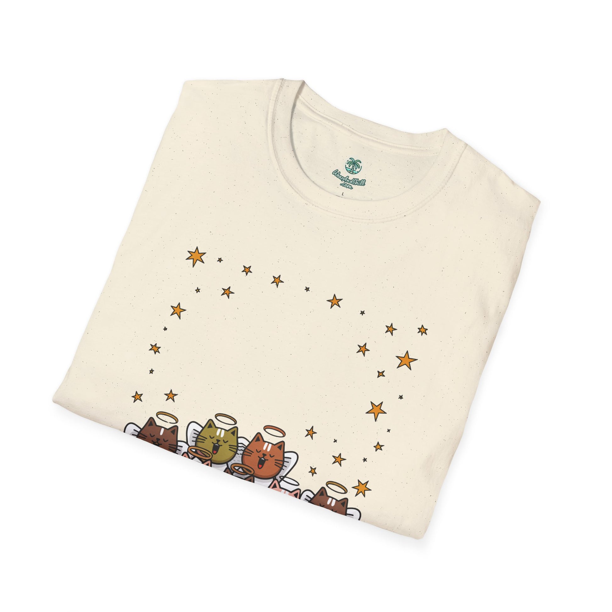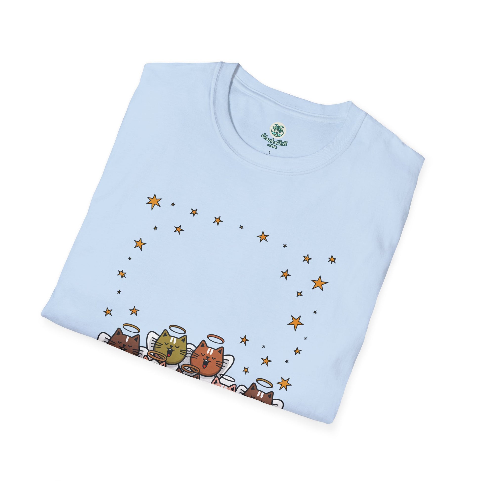Introducing the "A Choir of Cat Angels" T-Shirt, a purr-fect piece from our exclusive Christmas & Cats Collection. This whimsical design features a chorus of adorable angelic cats, each with a golden halo, singing holiday carols beneath a starlit sky. Ideal for cat lovers and holiday enthusiasts alike, this shirt is crafted from soft, breathable cotton, ensuring comfort and style. Whether you’re hosting a festive gathering or just spreading some holiday cheer, this unique tee is sure to make you the center of attention. Embrace the holiday spirit with feline charm! Available in various sizes.