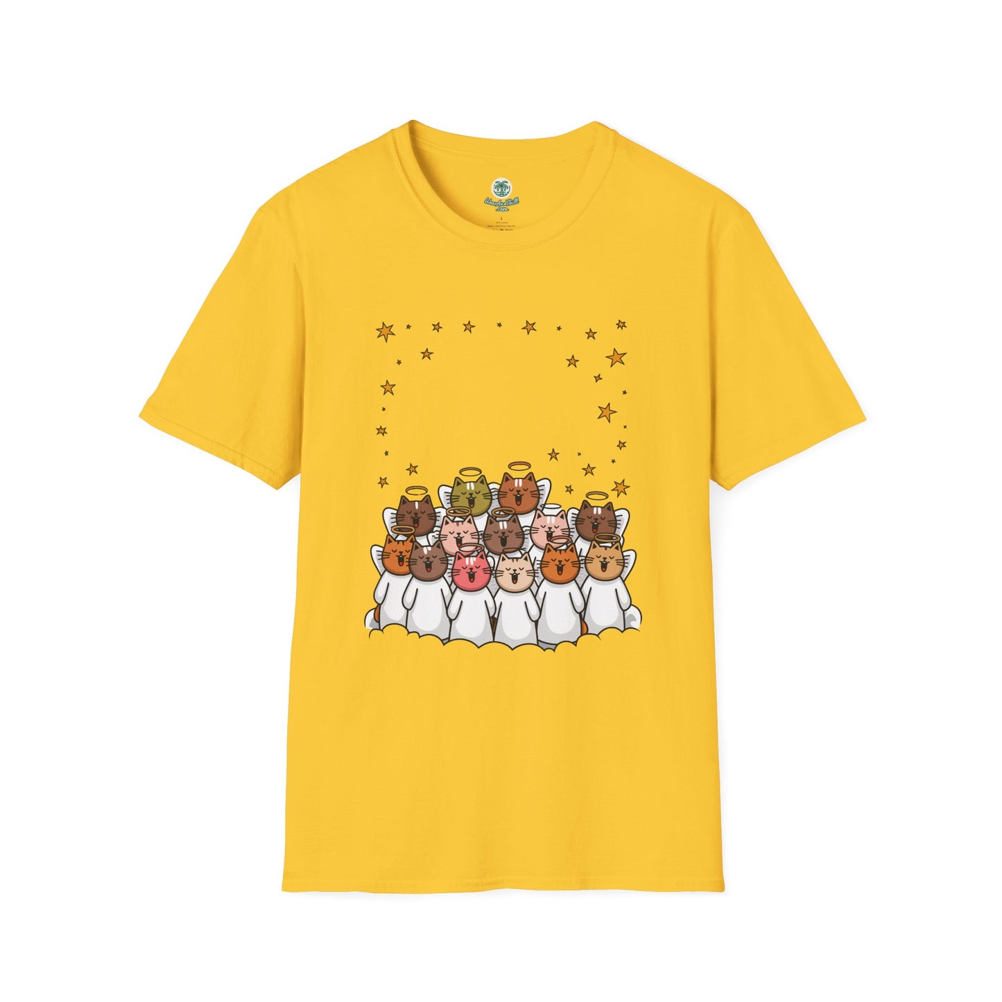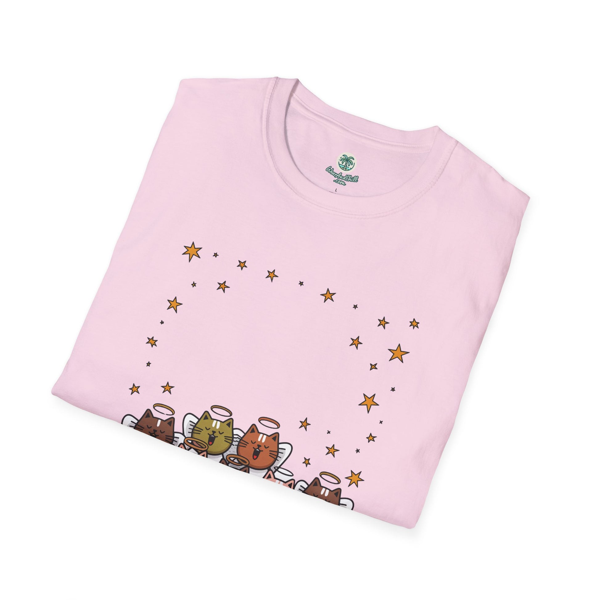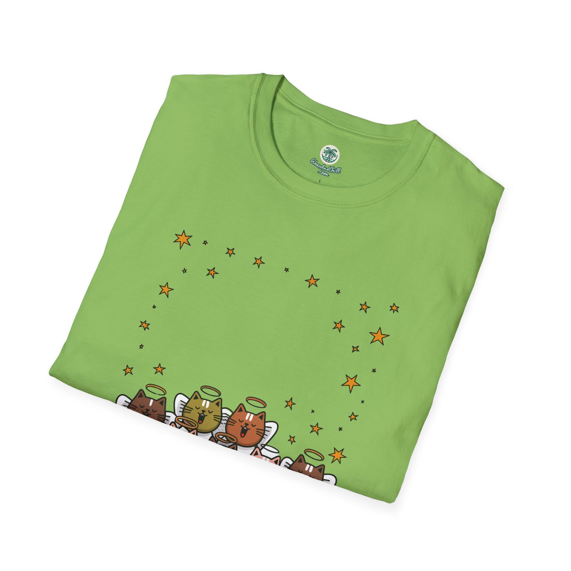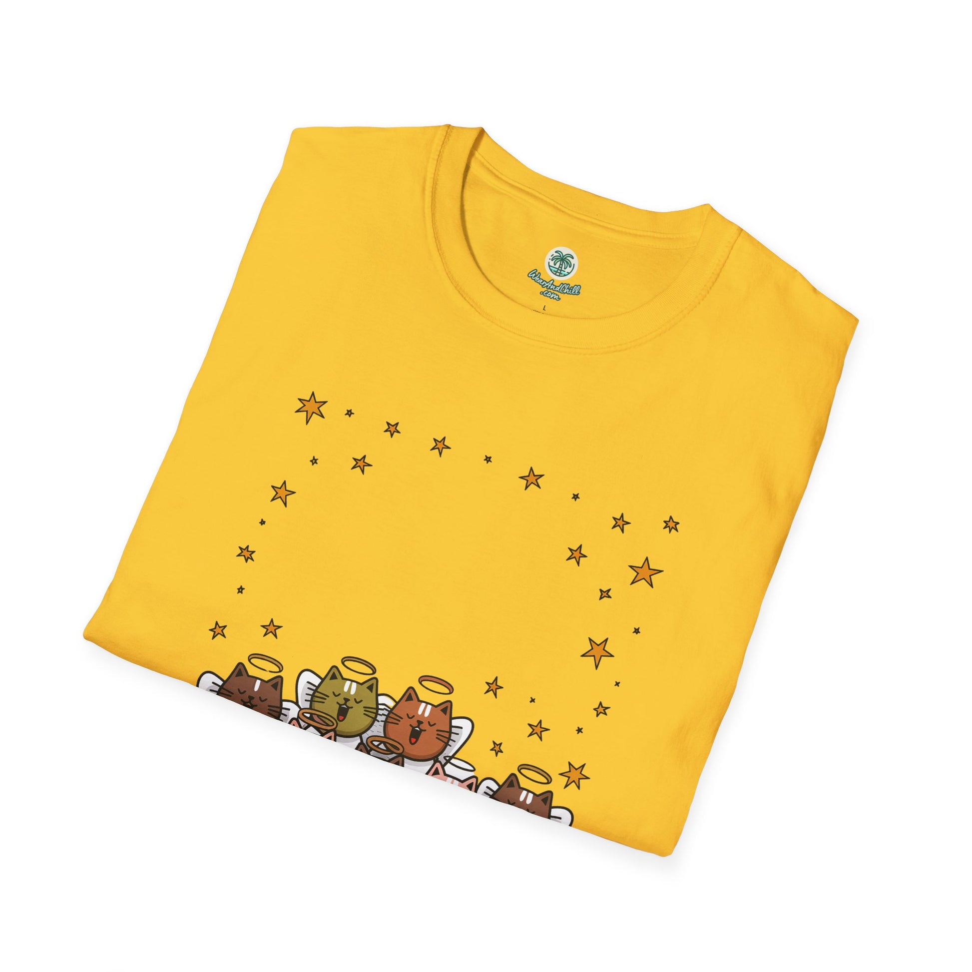 Introducing the "A Choir of Cat Angels" T-Shirt, a purr-fect piece from our exclusive Christmas & Cats Collection. This whimsical design features a chorus of adorable angelic cats, each with a golden halo, singing holiday carols beneath a starlit sky. Ideal for cat lovers and holiday enthusiasts alike, this shirt is crafted from soft, breathable cotton, ensuring comfort and style. Whether you’re hosting a festive gathering or just spreading some holiday cheer, this unique tee is sure to make you the center of attention. Embrace the holiday spirit with feline charm! Available in various sizes.