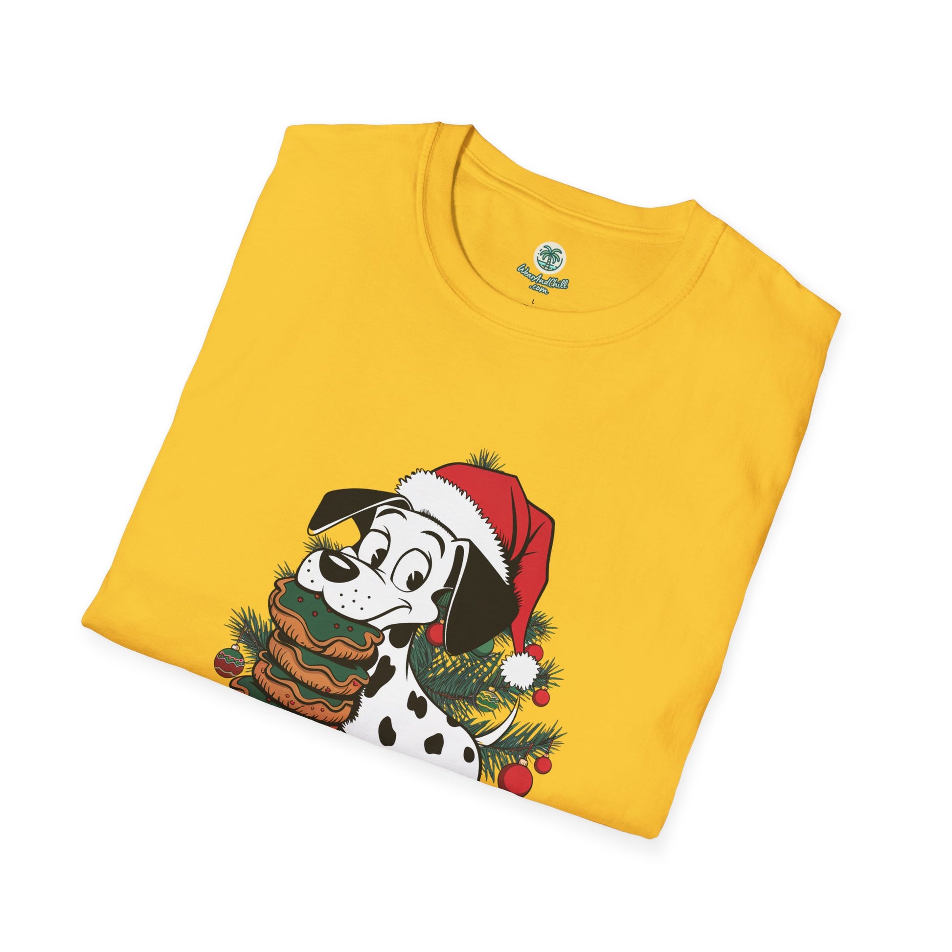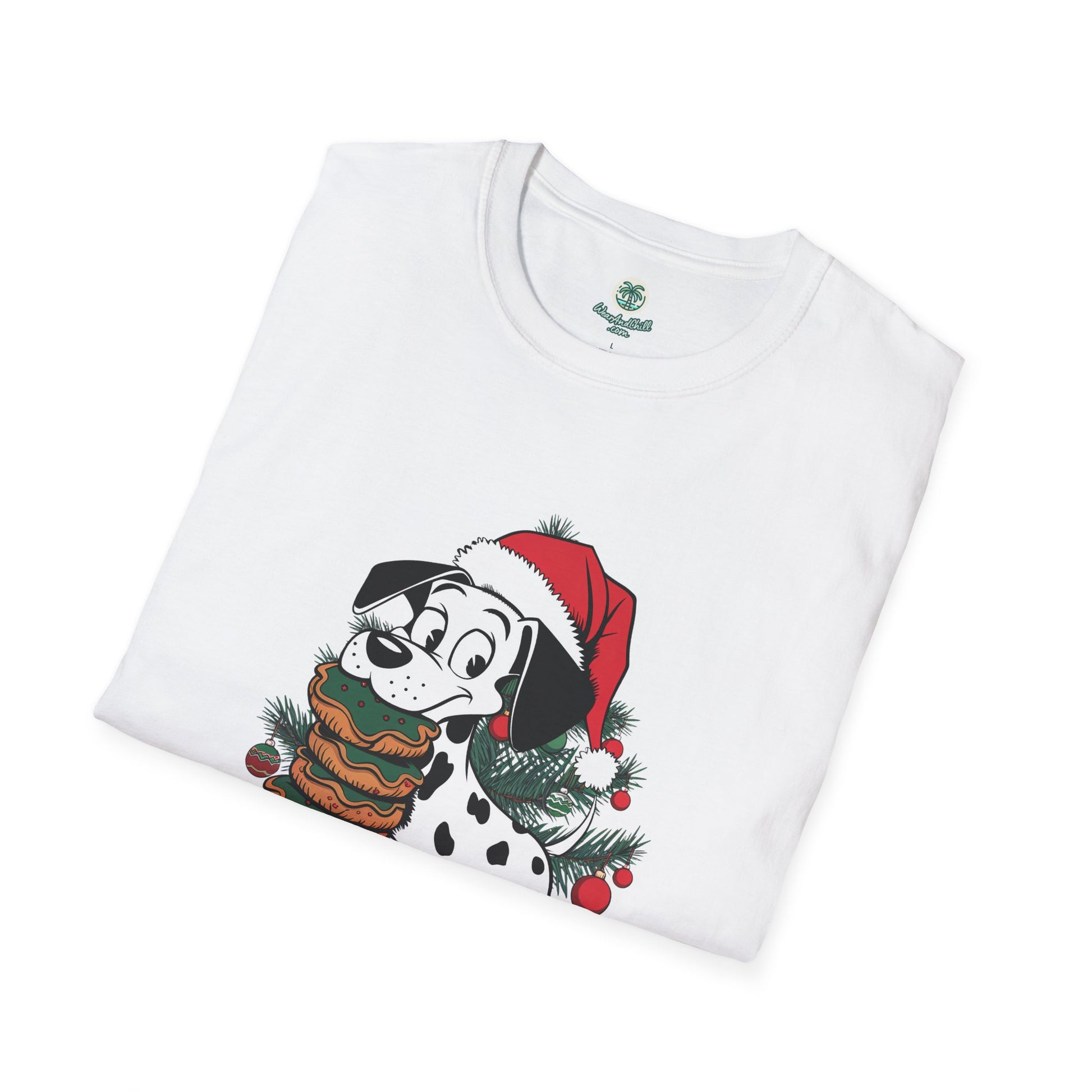 Unleash the festive spirit with this charming Christmas & dogs collection tee! Our "Dalmatian Balancing Christmas Cookies on Its Nose" t-shirt captures a playful scene that combines holiday cheer and canine charisma. Crafted from soft, high-quality cotton, it's perfect for dog lovers and Christmas enthusiasts alike. The intricate dalmatian design showcases an adorable pup masterfully balancing colorful cookies, making it a delightful addition to any holiday wardrobe. Available in various sizes, this tee is a great gift or a treat for yourself. Celebrate the holidays with a blend of humor and style in this unique Christmas t-shirt.