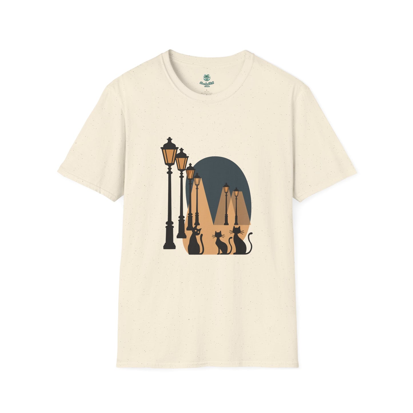 Embrace the magic of the holiday season with our "Peaceful Winter Street Scene" t-shirt from the exclusive Christmas & Cats Collection. This whimsical design captures a serene winter street, where playful cats gather under glowing lamplights, bringing joy to chilly nights. Crafted with soft, breathable cotton, this tee promises comfort while showcasing your love for the festive season and charming felines. Ideal for cozy evenings or holiday gatherings, it's a must-have for cat lovers and winter enthusiasts alike. Celebrate the warmth of winter with this delightful piece, perfect for gifting or adding a unique touch to your holiday wardrobe.