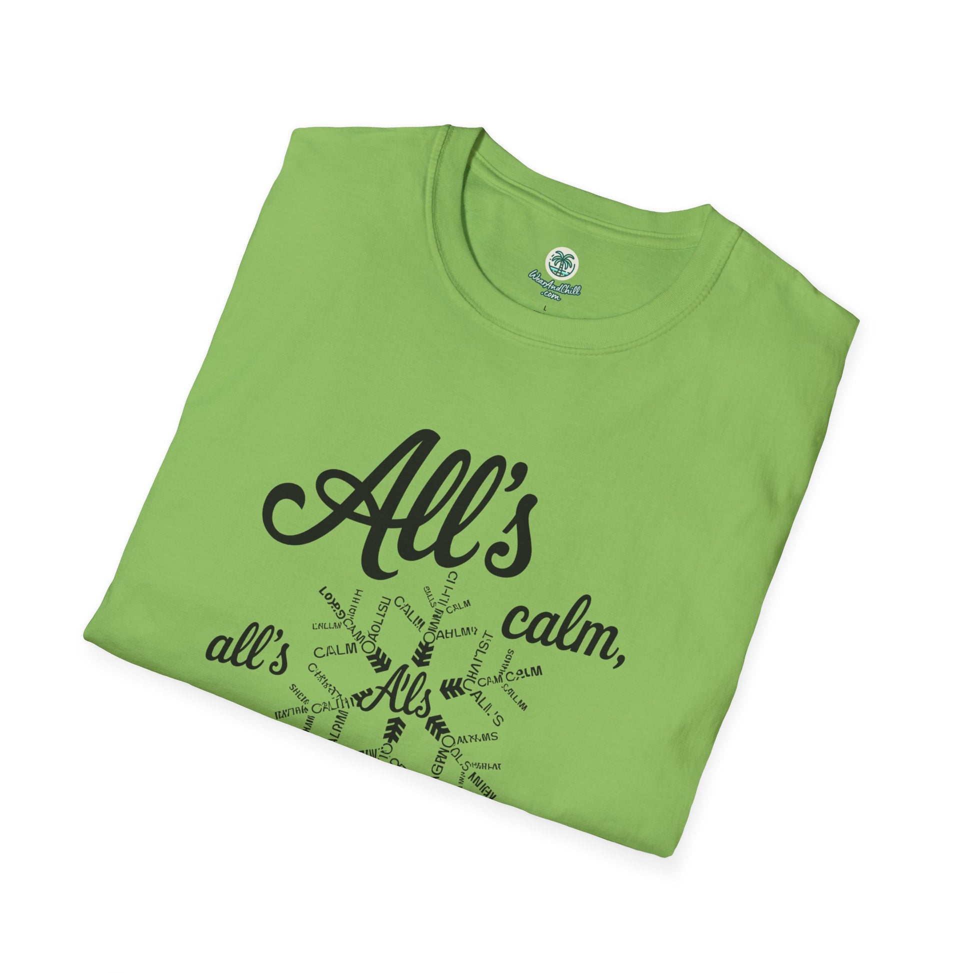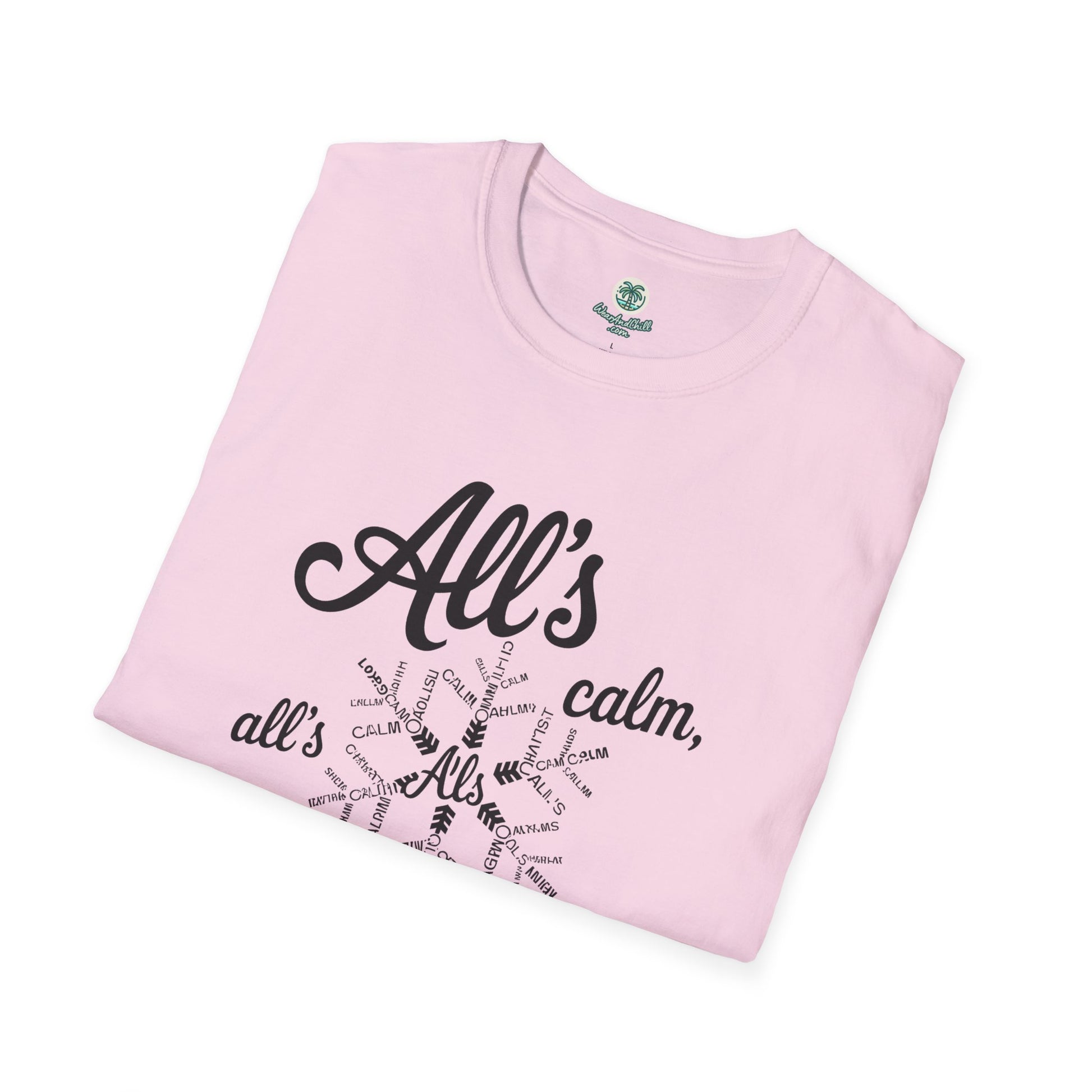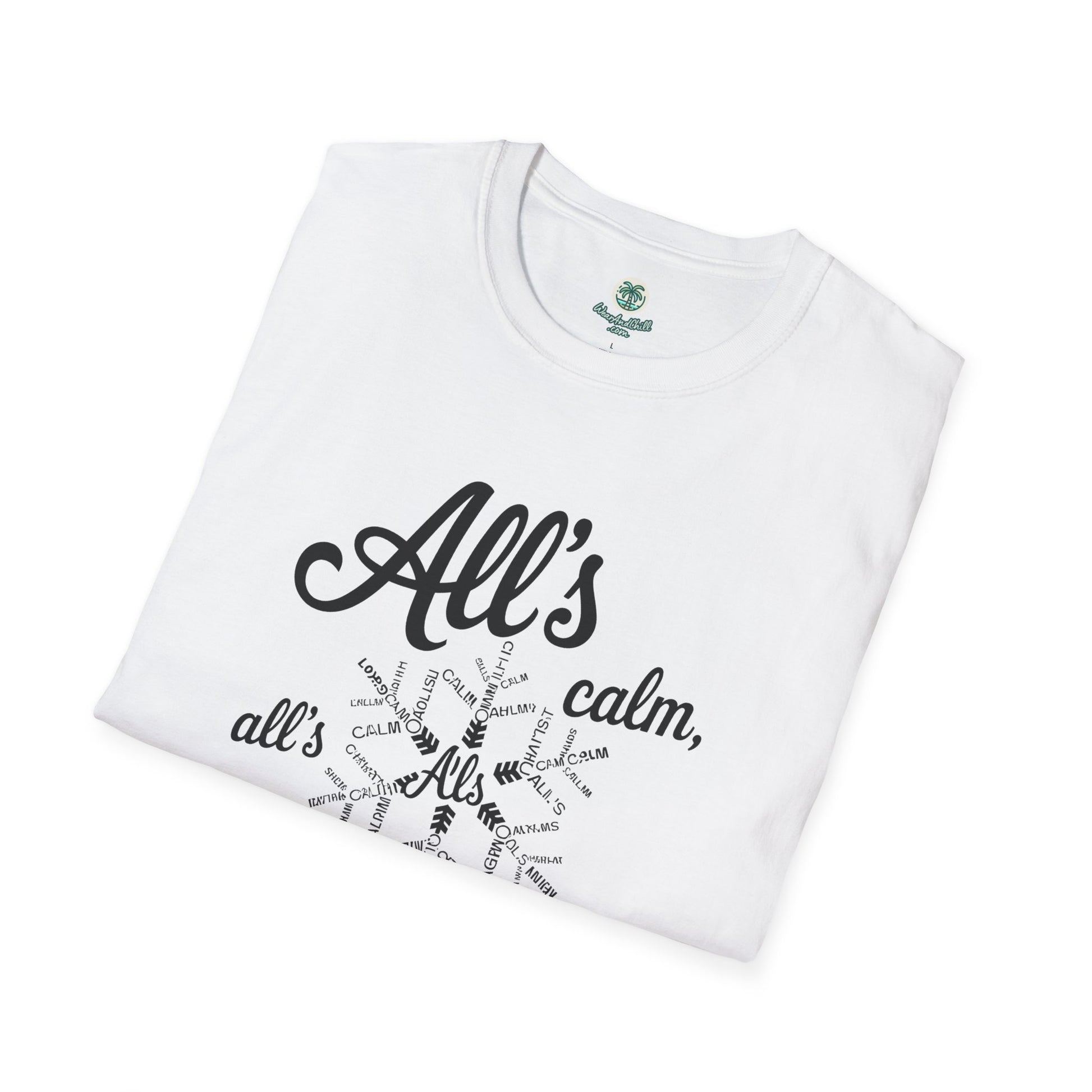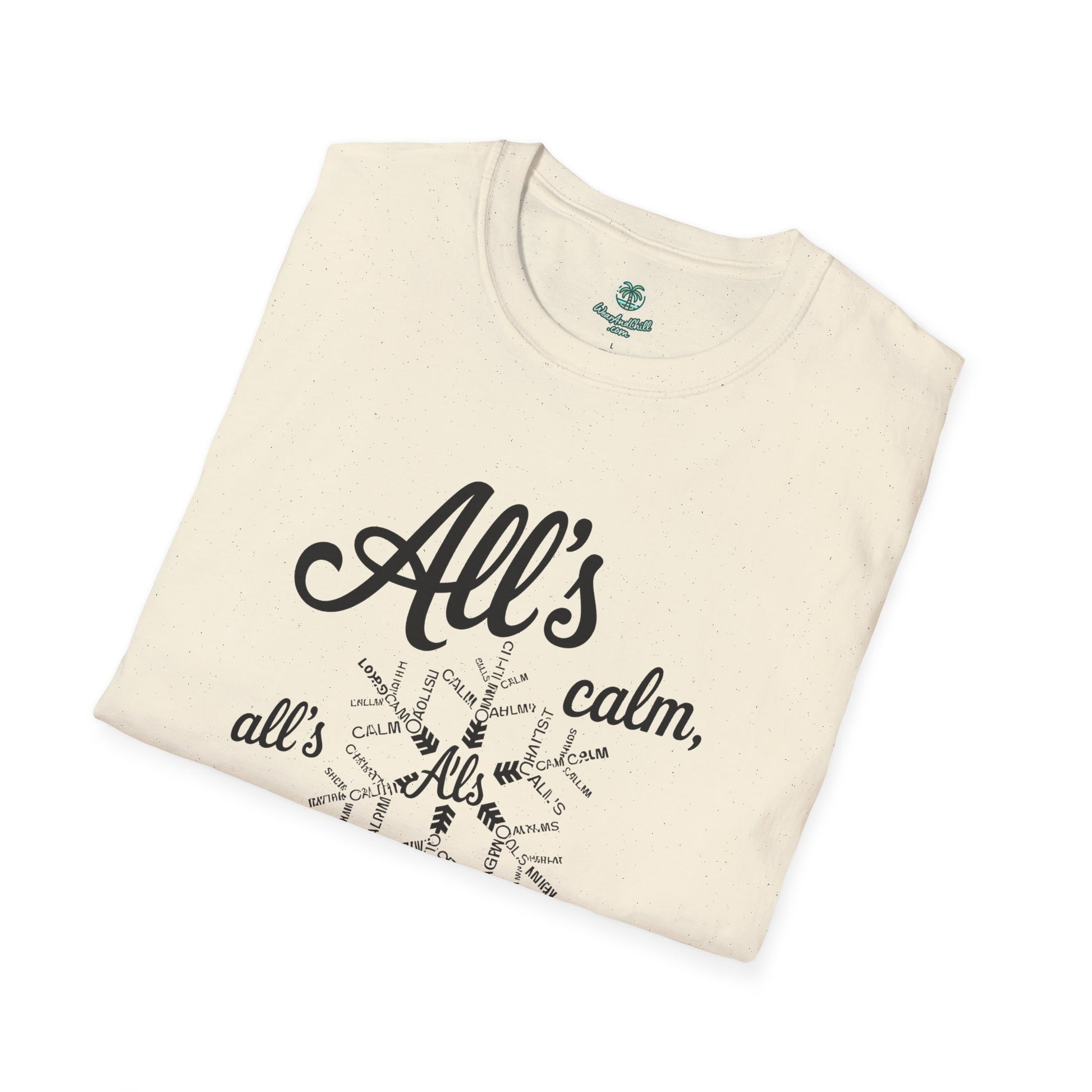 Embrace the spirit of the season with our "All's Calm, All's Bright" t-shirt from the Christmas Phrases Collection. Crafted from ultra-soft, high-quality cotton, this tee promises unmatched comfort and durability. The elegant design features a festive script that captures the essence of a serene holiday. Perfect for gatherings, gift-giving, or spreading joy and cheer, it's a must-have for the holidays. Available in multiple sizes and colors to suit your style. Celebrate the magic of Christmas with every wear. Whether for you or a loved one, this t-shirt is sure to make the season merry and bright.