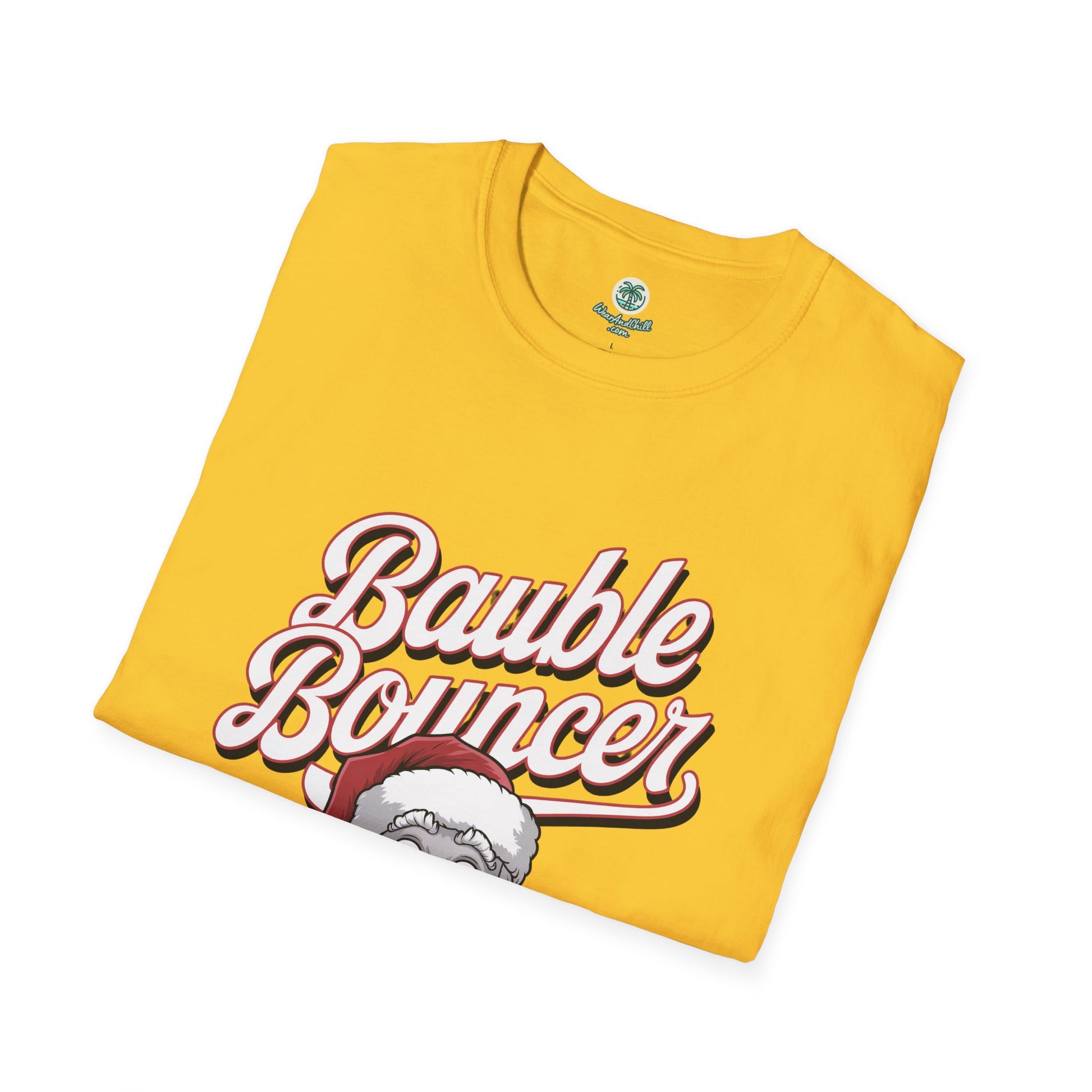 Introducing the "Bauble Bouncer" T-Shirt from our exclusive Christmas Phrases Collection. This festive tee captures the joyful spirit of the season with its playful design and vibrant colors. Crafted from ultra-soft, breathable fabric, it ensures maximum comfort whether you're decking the halls or bouncing from one holiday party to the next. The lively "Bauble Bouncer" print adds a whimsical touch, making it a perfect gift for yourself or a loved one. Spread cheer and keep it stylish this holiday season with a shirt that embodies the essence of festive fun. Available in a variety of sizes for the perfect fit.