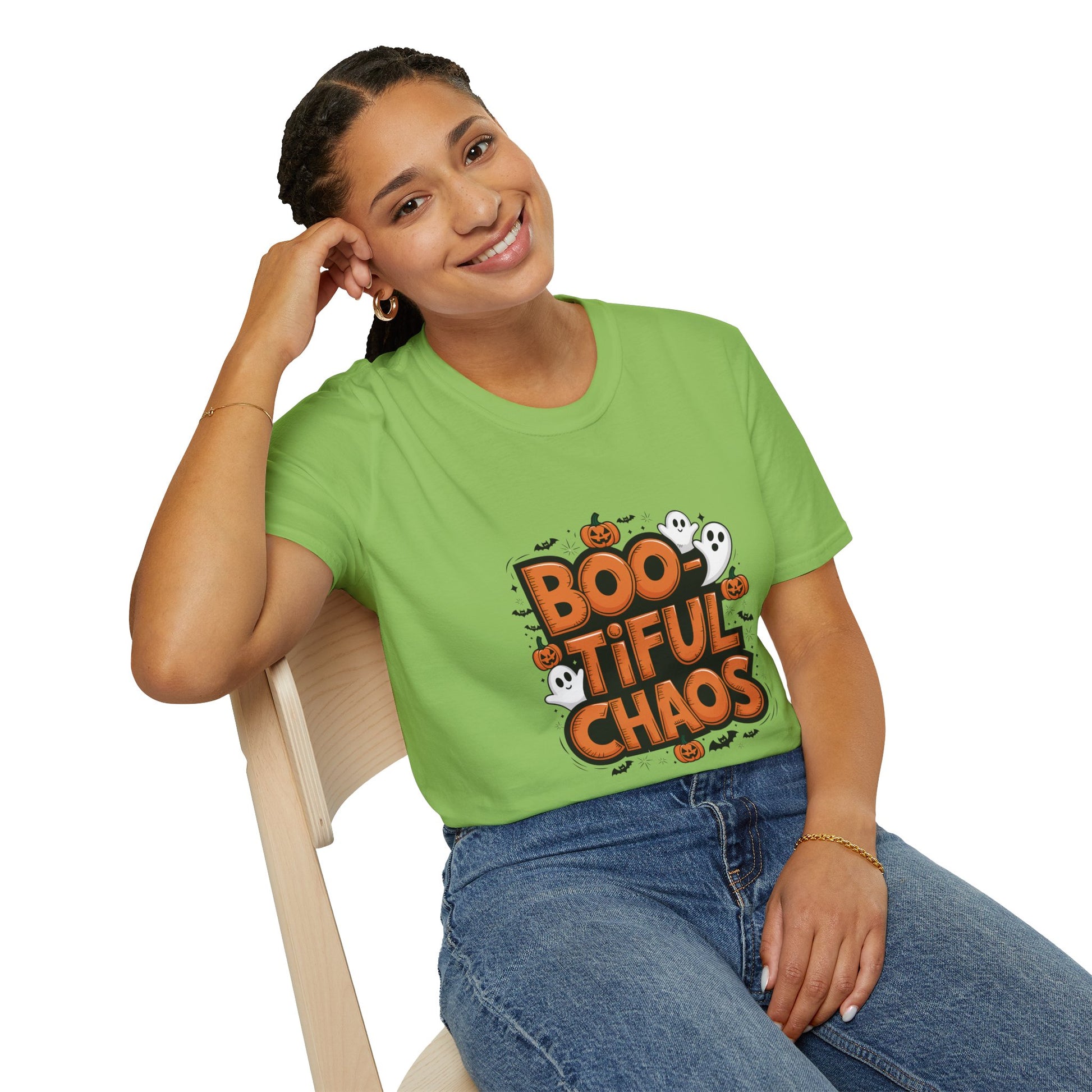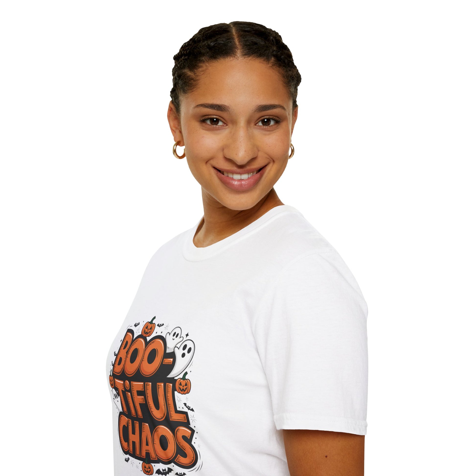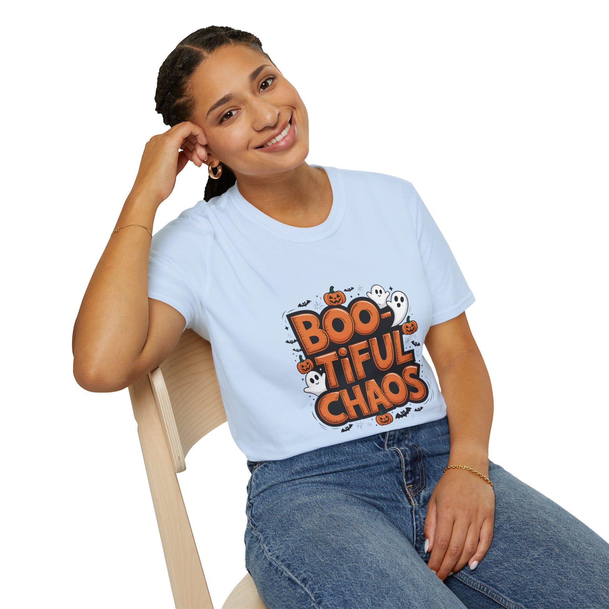 Introducing the "Boo-tiful Chaos" White Lie T-shirt! Embrace the spirit of October with this playful and spooky design. Perfect for Halloween parties, pumpkin patches, or everyday wear, this tee combines humor and style effortlessly. Made from soft, breathable cotton, it ensures all-day comfort. Don't just blend in, stand out with Boo-tiful Chaos. Get yours now and add a dash of mischief to your wardrobe!