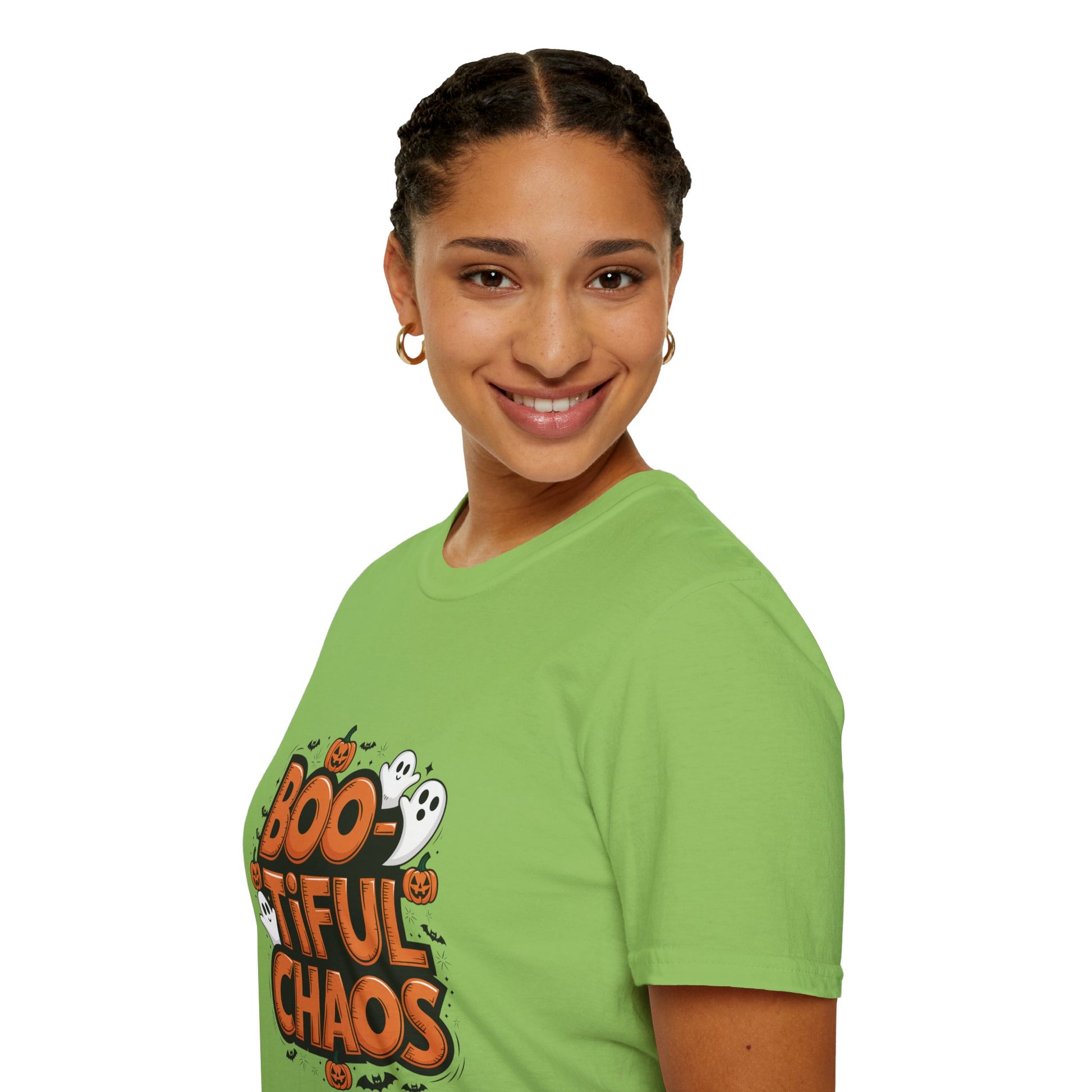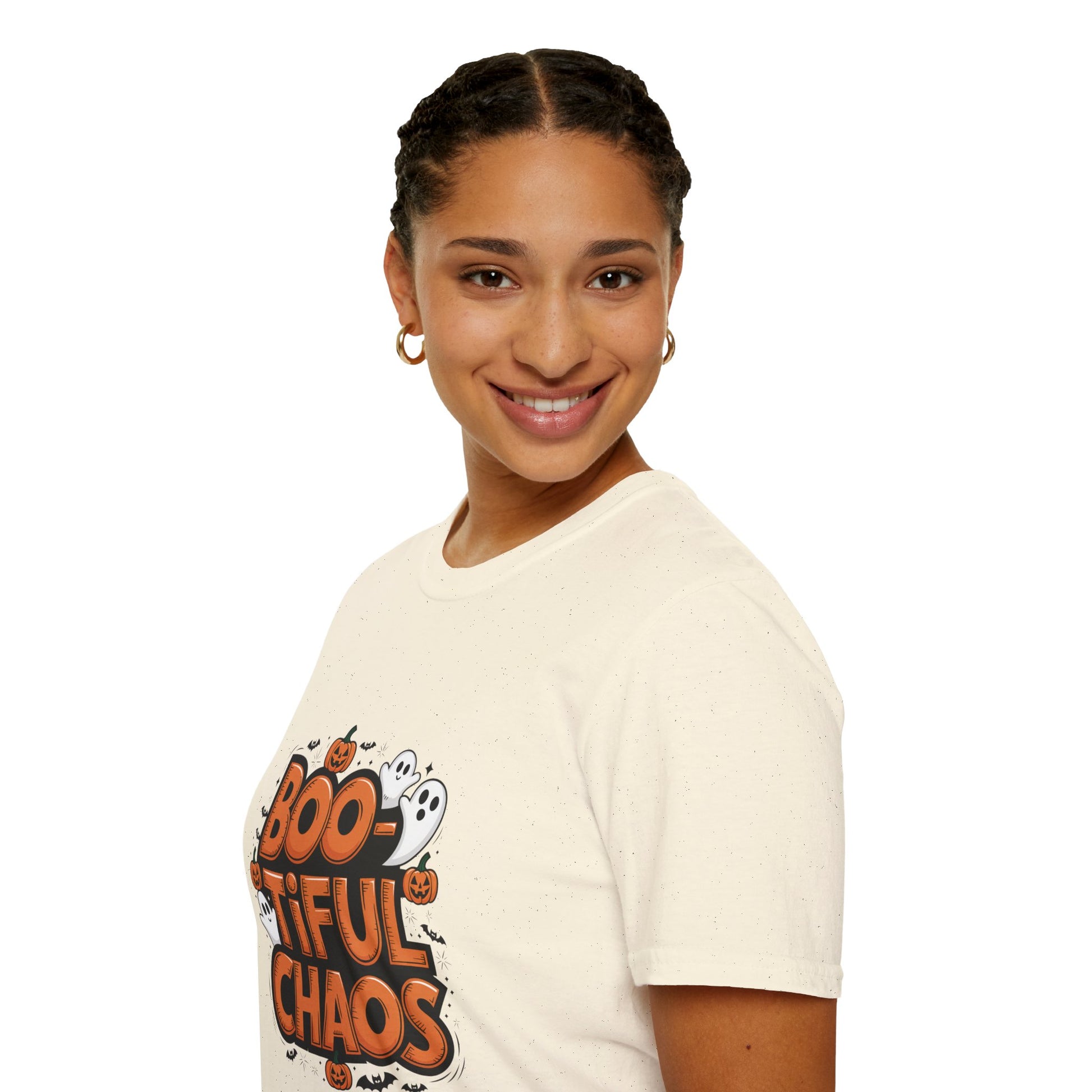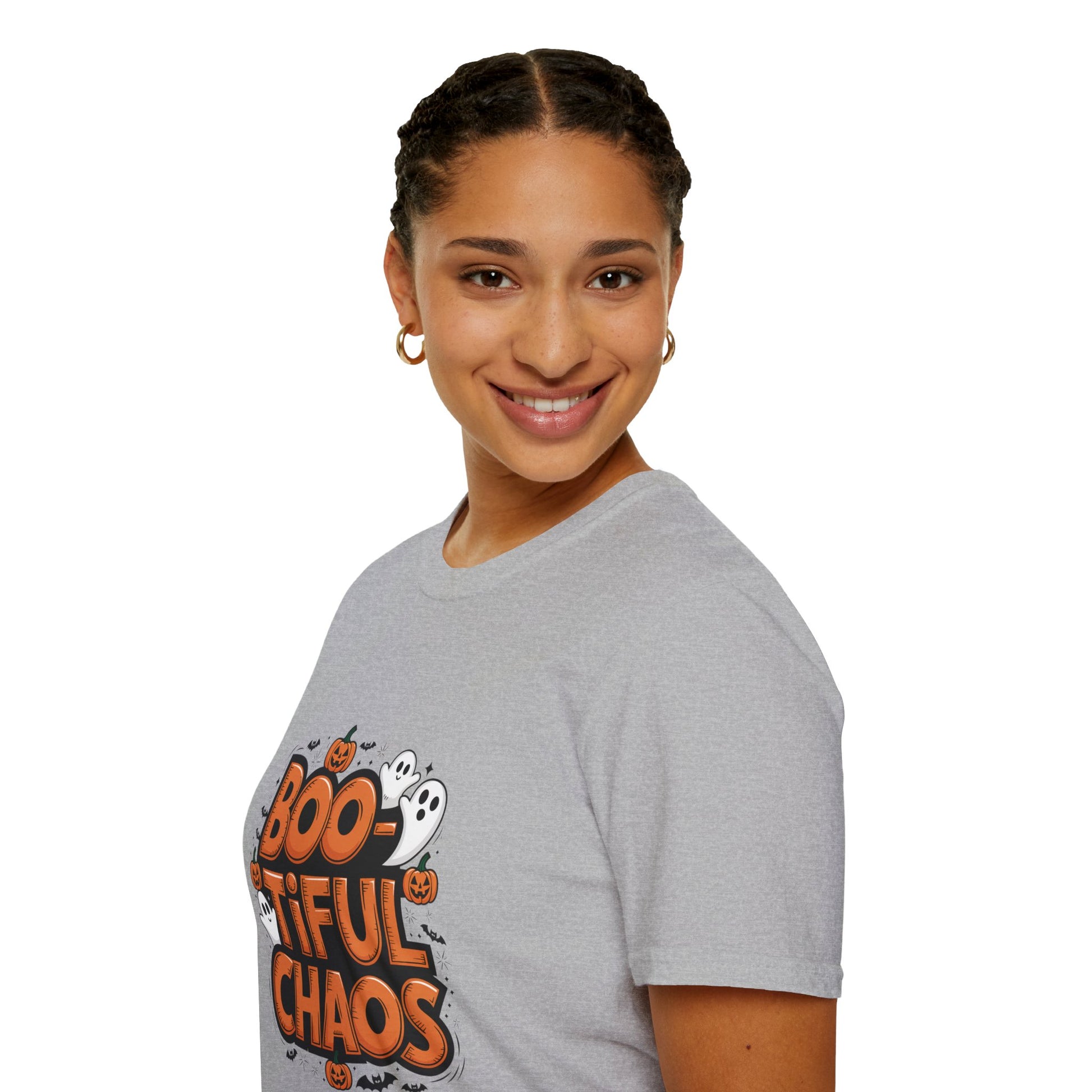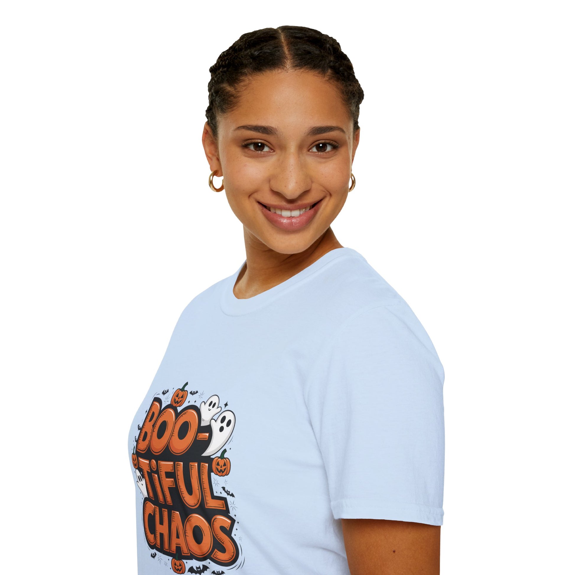 Introducing the "Boo-tiful Chaos" White Lie T-shirt! Embrace the spirit of October with this playful and spooky design. Perfect for Halloween parties, pumpkin patches, or everyday wear, this tee combines humor and style effortlessly. Made from soft, breathable cotton, it ensures all-day comfort. Don't just blend in, stand out with Boo-tiful Chaos. Get yours now and add a dash of mischief to your wardrobe!