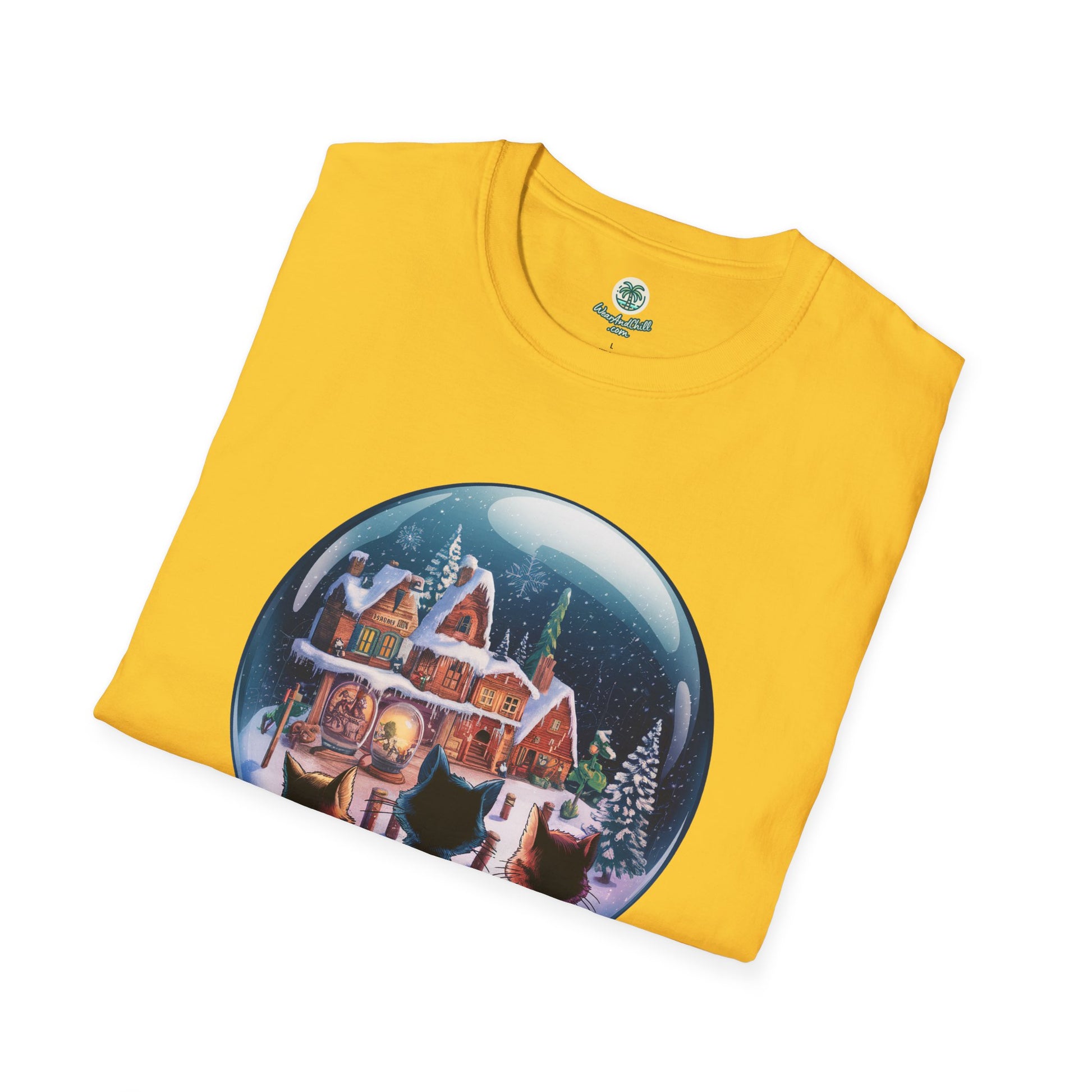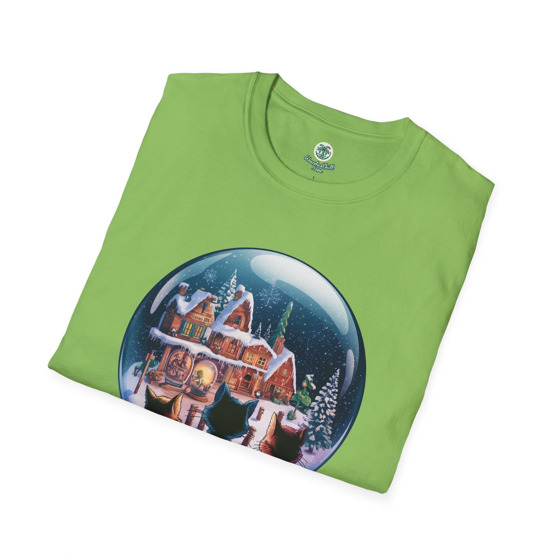 Unveil the magic of the holidays with our "Cats Observing a Snow Globe World" T-Shirt, a charming piece from our Christmas & Cats Collection. This unique, whimsical design features curious cats gazing at a mesmerizing snow globe, capturing the essence of winter wonder. Crafted from super-soft, high-quality cotton, it ensures all-day comfort and style. Perfect for cat enthusiasts and those who cherish holiday nostalgia, this t-shirt makes a delightful gift or a festive addition to your wardrobe. Embrace the cozy charm of the season and celebrate with a touch of feline fun. Available in multiple sizes and colors.