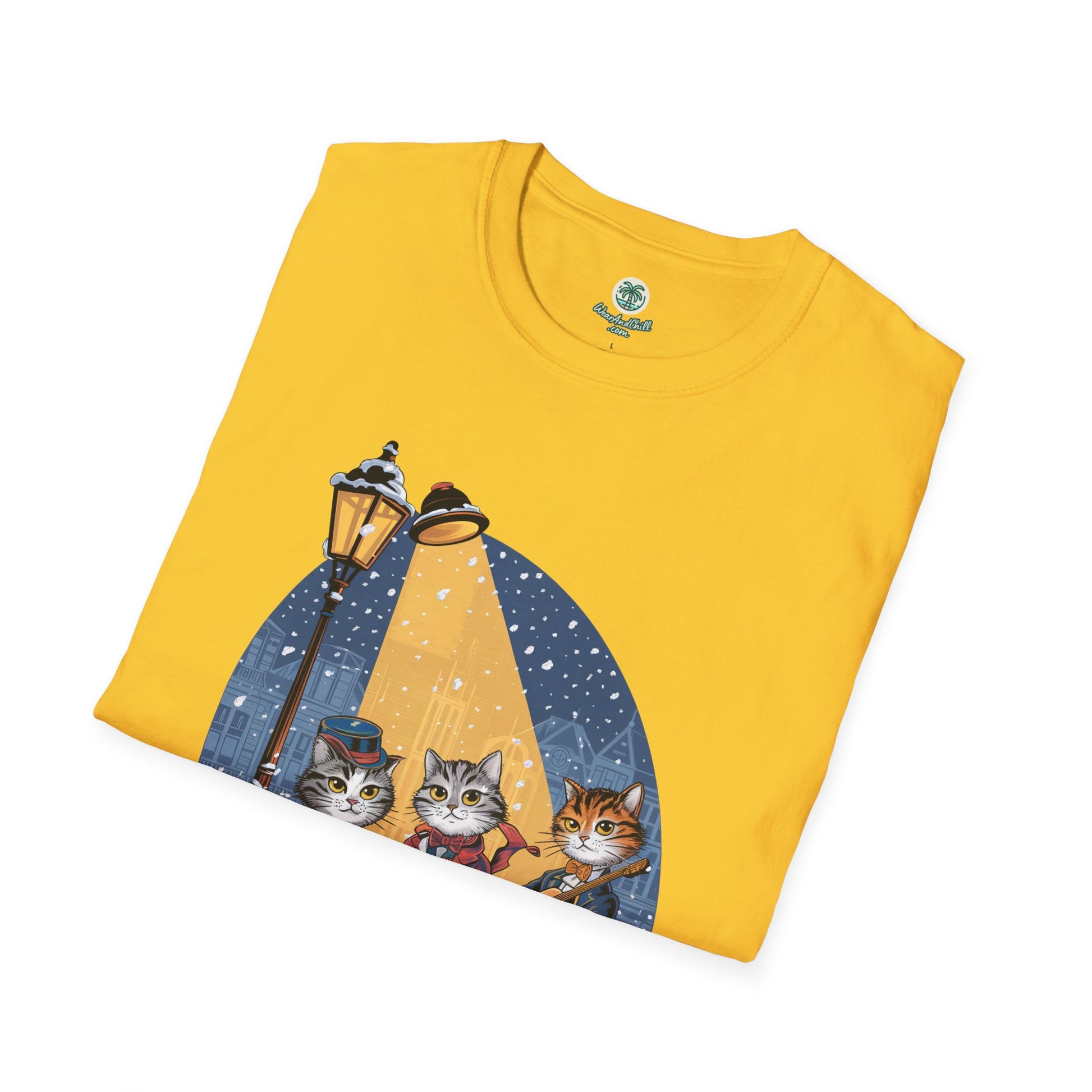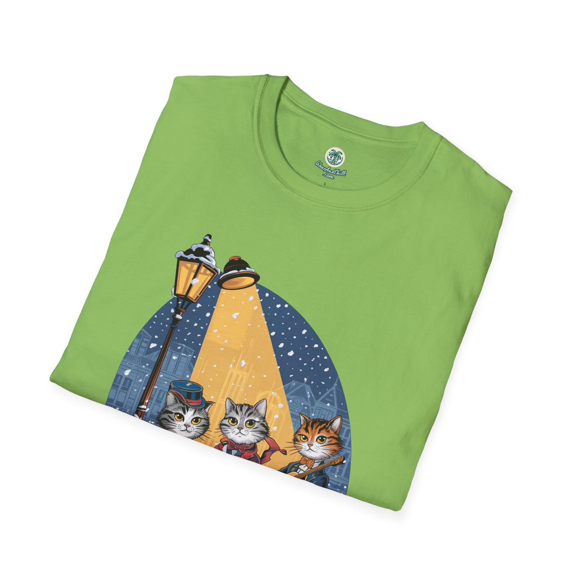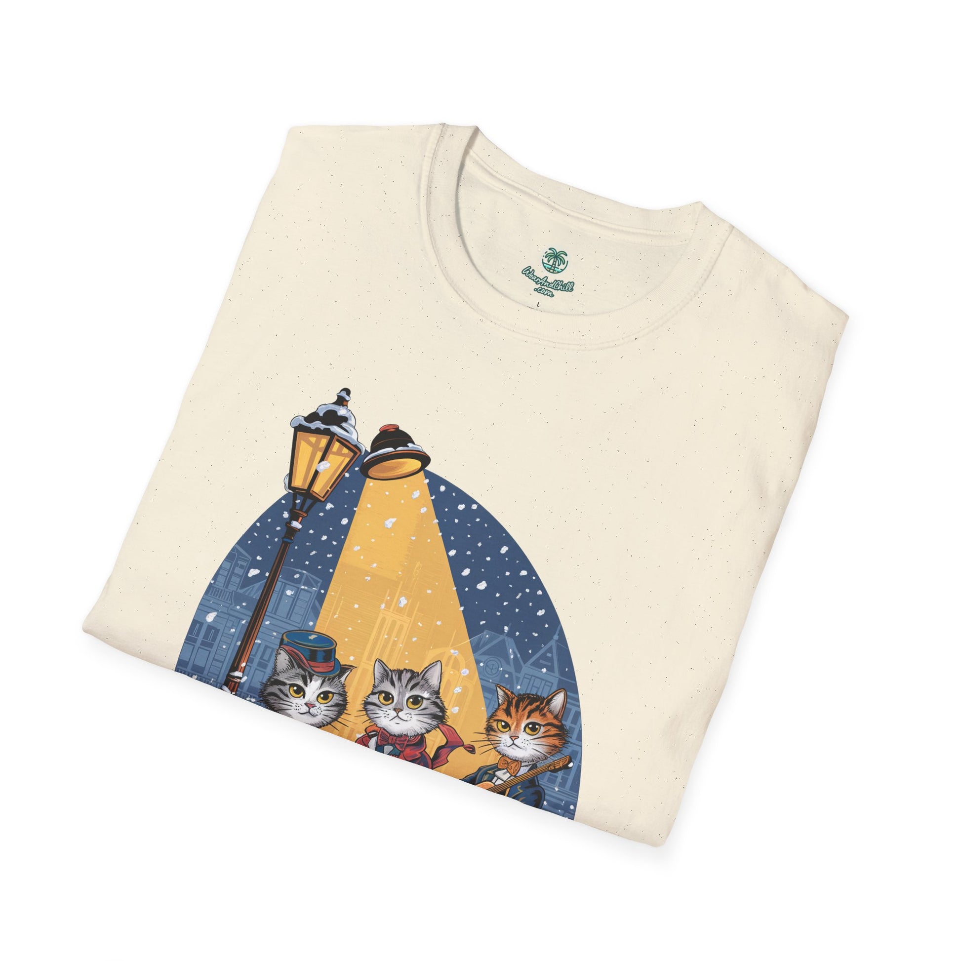 Introducing the "Cats Serenading Under a Streetlamp in the Snow" T-shirt, an enchanting piece from our Christmas & Cats Collection. Embrace the magic of the holiday season with this whimsical design featuring adorable cats harmonizing under a vintage streetlamp, surrounded by softly falling snowflakes. Crafted from premium, breathable cotton, this tee ensures comfort all day while showcasing your love for both Christmas and cats. Perfect for cozy nights or festive gatherings, it’s a must-have for cat enthusiasts and holiday lovers alike. Available now, spread some seasonal cheer with this unique addition to your wardrobe.