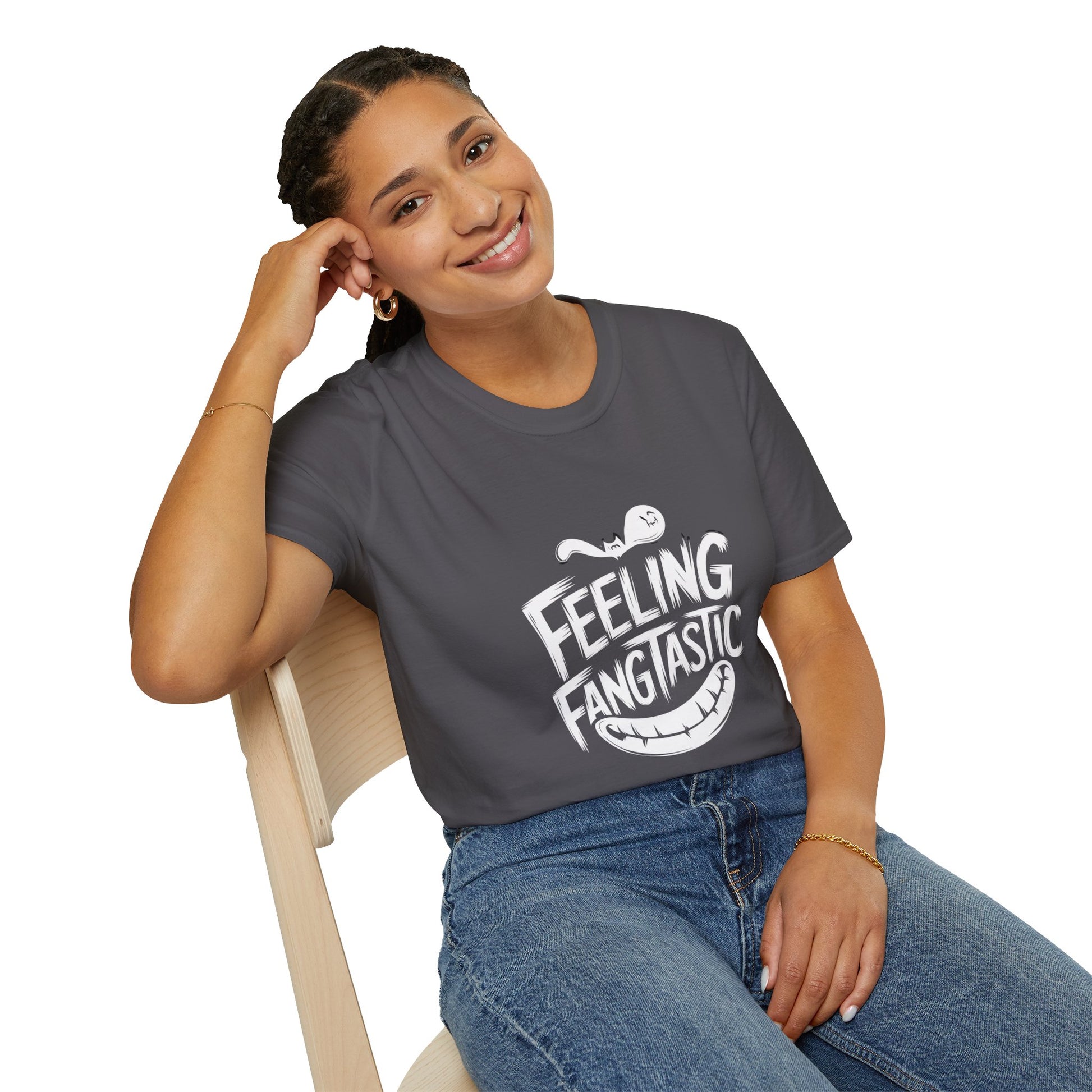 Unleash your inner vampire with our "Feeling Fangtastic" T-shirt! Crafted from premium, soft 100% cotton, this white tee offers maximum comfort and a chic look for all your spooktacular adventures. The bold, playful text and minimalistic design make it an ideal addition to any casual wardrobe. Perfect for Halloween parties, weekend outings, or simply flaunting your quirky style. Get ready to turn heads and spread good vibes with the Feeling Fangtastic T-shirt! Available in a range of sizes to ensure the perfect fit for everyone.