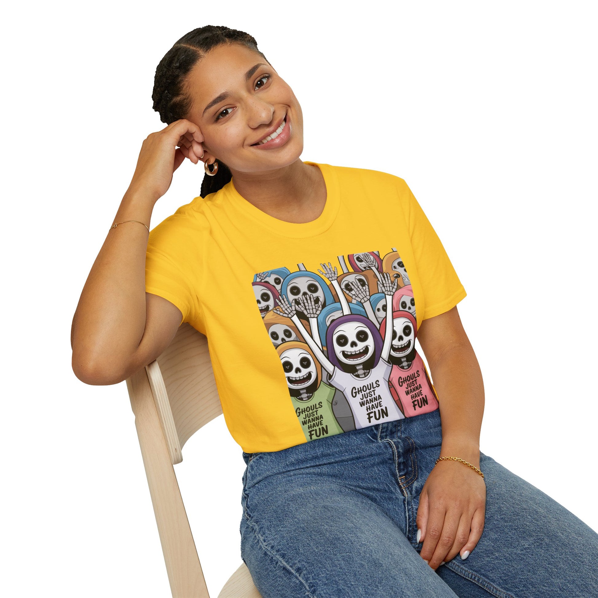 Unleash your spooky spirit with our "Ghouls Just Wanna Have Fun" T-Shirt. Perfect for Halloween and beyond, this playful design is printed on a soft, high-quality white tee. Whether you're haunting the streets or just lounging at home, this shirt is both comfortable and stylish. Embrace your inner ghoul and get ready to have a frightfully good time. Limited stock – grab yours before they vanish!