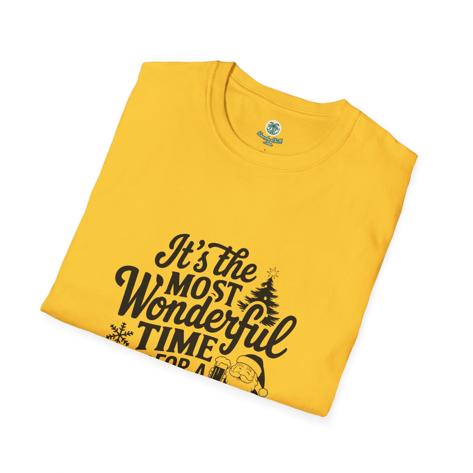 Celebrate the festive season in style with our "It's the Most Wonderful Time for a Beer" t-shirt from our exclusive Christmas Phrases Collection. Crafted from soft, high-quality cotton, this tee offers unmatched comfort and durability. The playful holiday design is perfect for beer lovers who want to spread some cheer. Whether you're attending holiday parties or cozying up by the fire, this shirt makes a statement. Available in a variety of sizes, it's an ideal gift for yourself or the beer enthusiast in your life. Embrace the season with a touch of humor and festive fun!