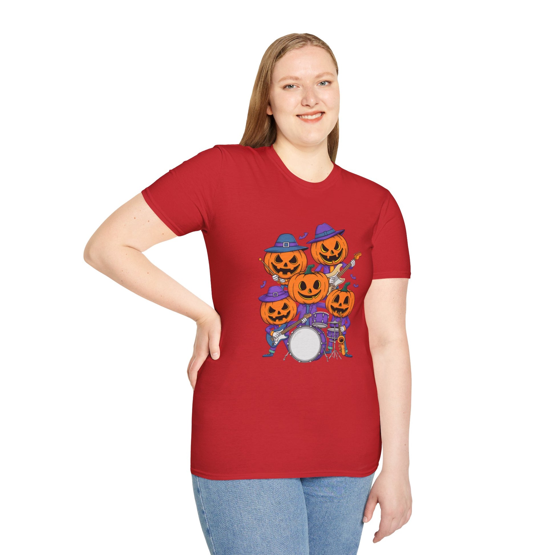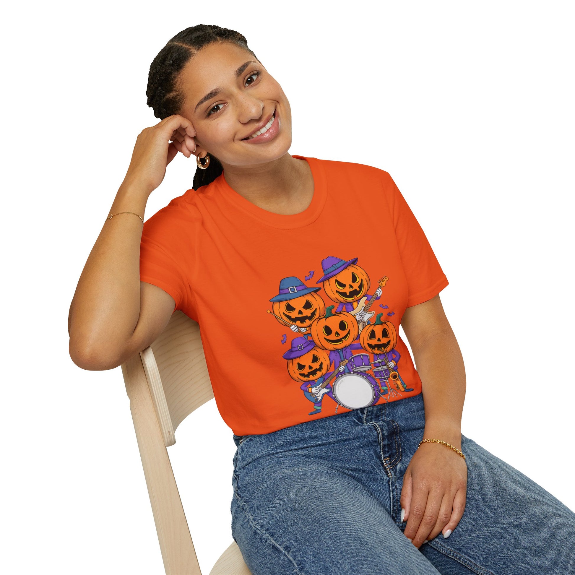 Spook up your style with our "Little Jack-o'-lanterns Forming a Band" T-shirt! This white tee features a playful design of adorable jack-o'-lanterns rocking out together. Made from premium cotton for ultimate comfort and durability, it's perfect for Halloween or any day you want to add a touch of festive fun. With a classic fit and vibrant print, this t-shirt is a must-have for all pumpkin lovers. Light up the room with your quirky charm and playful spirit! Get yours today and join the band!