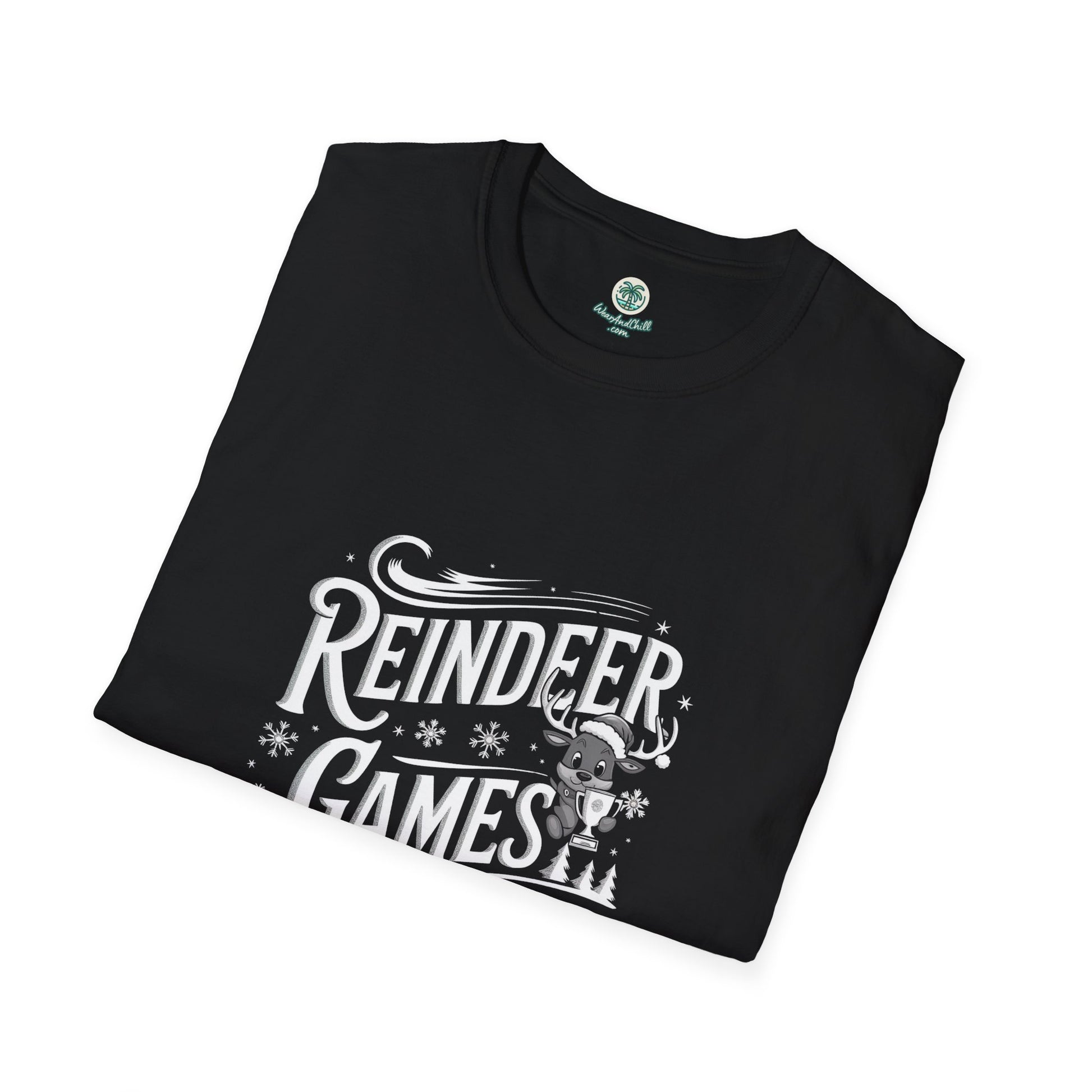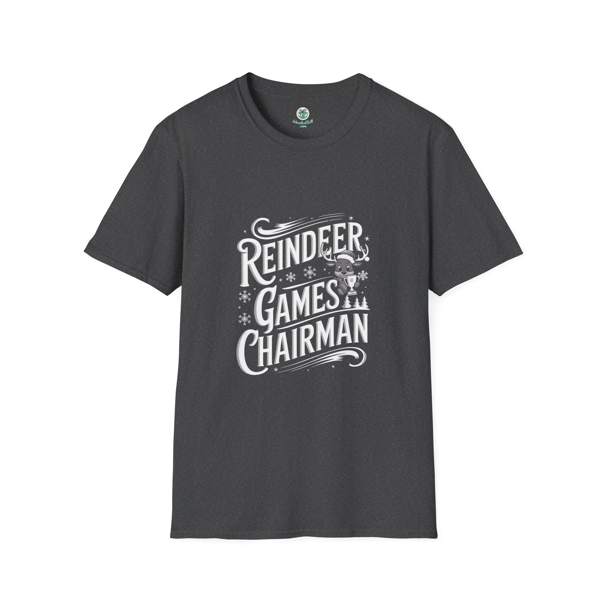 Unleash the holiday cheer with our Reindeer Games Chairman T-shirt from the Christmas Phrases Collection! Crafted from soft, breathable cotton, this tee offers both comfort and style. The playful design features a charming reindeer adorned with a festive hat and bow, ready to take charge of the season's festivities. Perfect for holiday gatherings or casual winter days, it pairs effortlessly with your favorite jeans or cozy pajamas. Embrace the spirit of Christmas and make a statement with this unique tee. Available in multiple sizes, it’s a must-have for every holiday enthusiast. Make it yours and lead the holiday fun today!