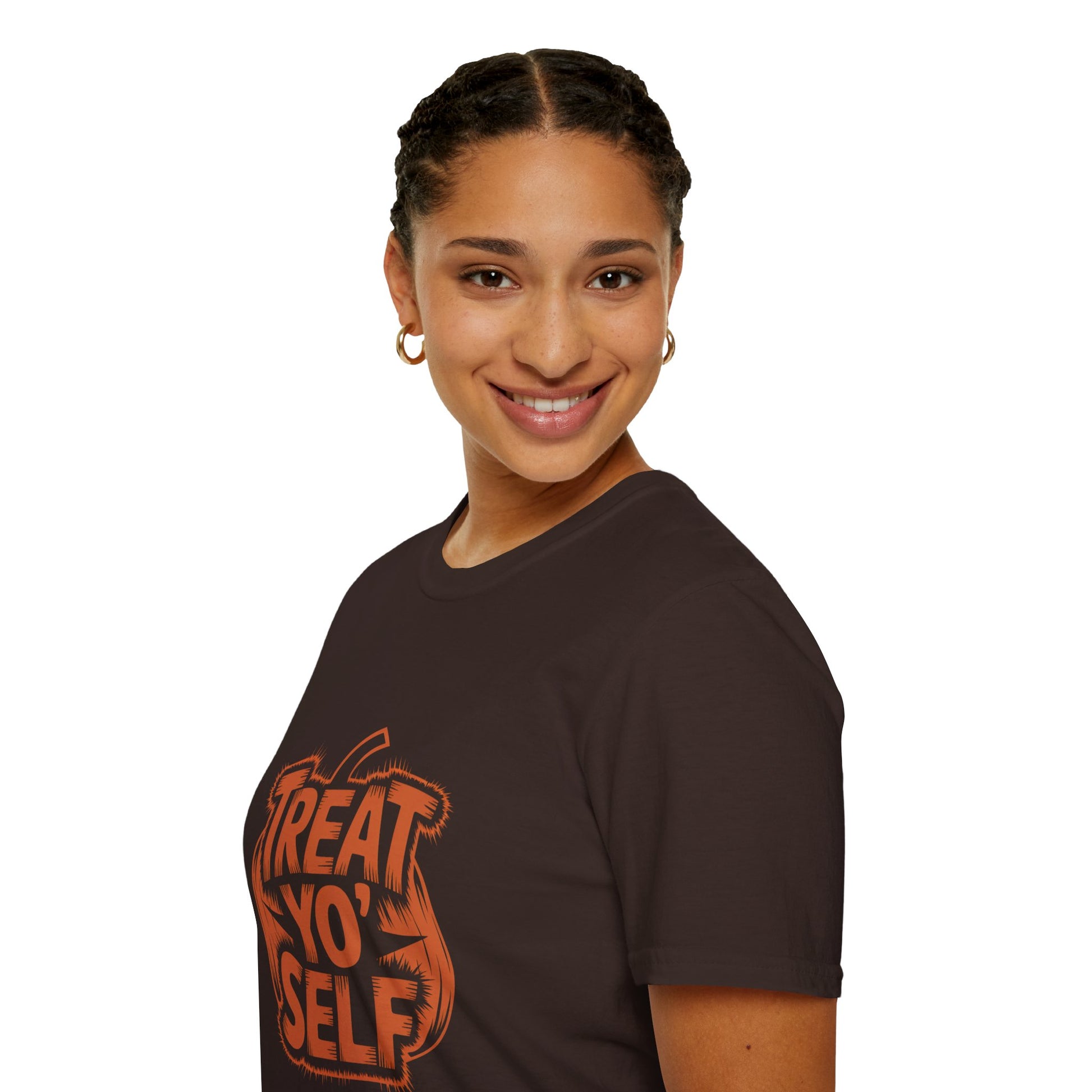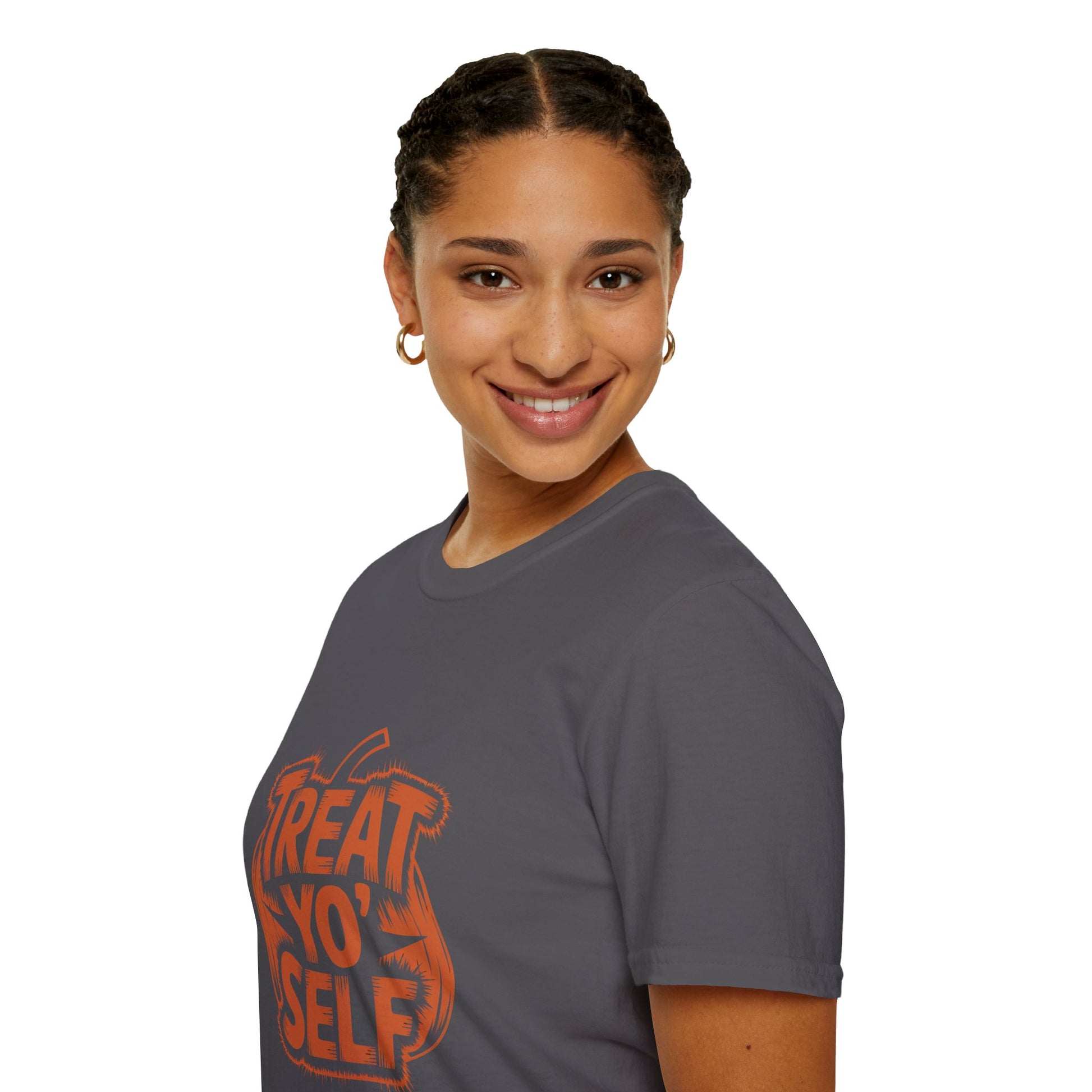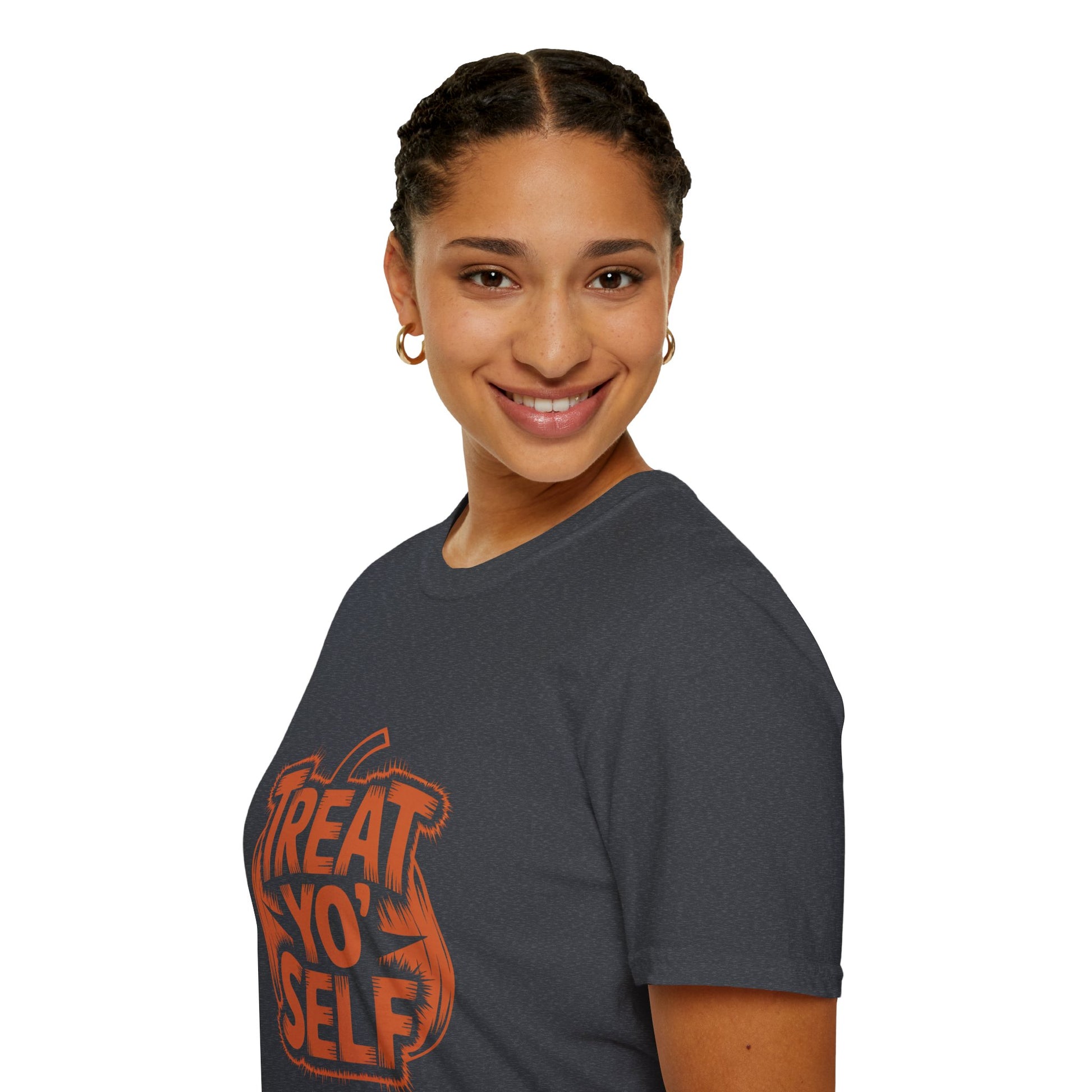 Unleash your inner diva with our "Treat Yo' Self" White Lie T-Shirt! Crafted from premium, ultra-soft cotton, this trendy tee delivers all-day comfort and style. The bold, fun "Treat Yo' Self" slogan is perfect for anyone in need of a little self-care reminder. Whether you're lounging at home, hitting the gym, or hanging out with friends, this versatile shirt is your go-to pick. Stand out and spread good vibes with this must-have fashion statement. Available in sizes S-XXL. Treat yourself today!