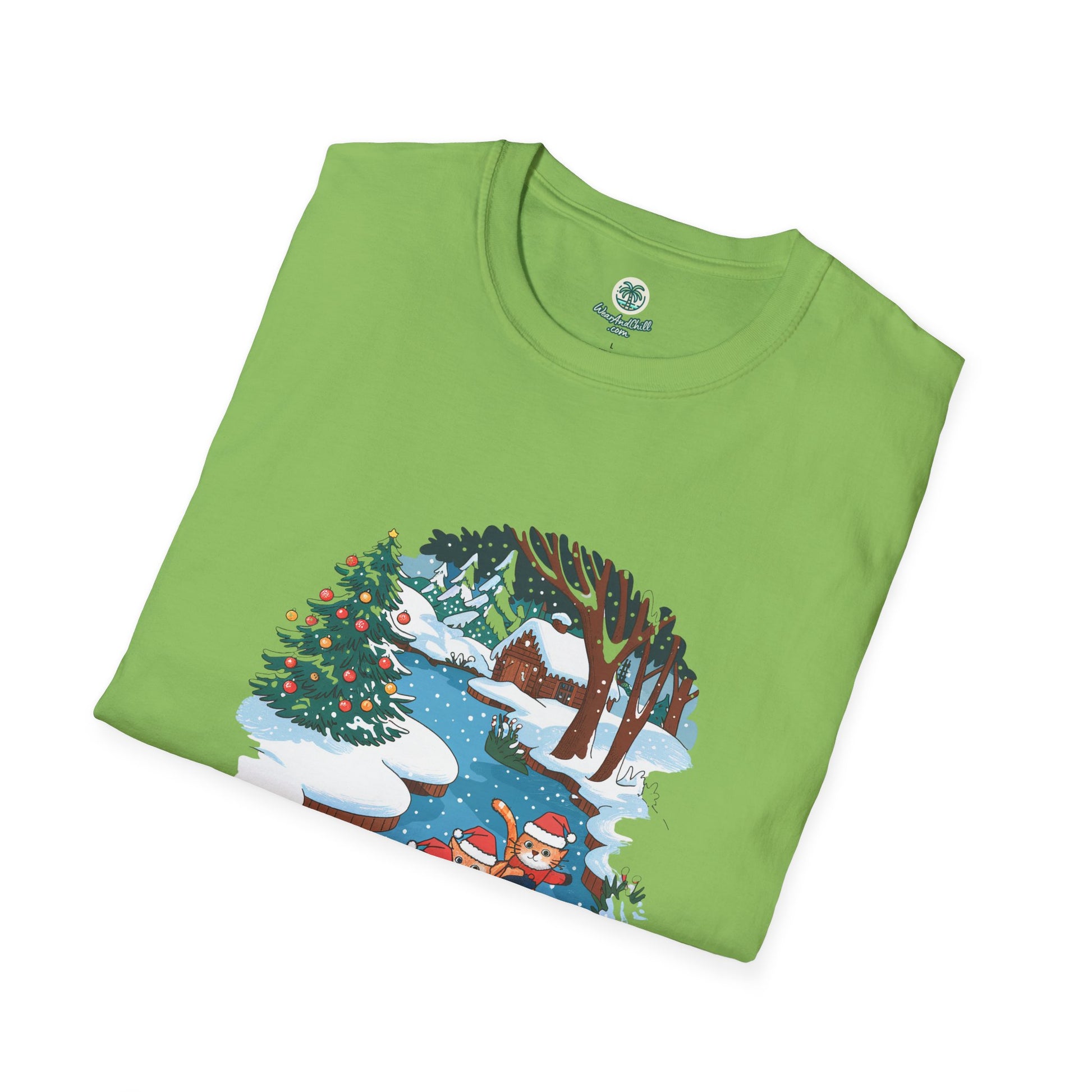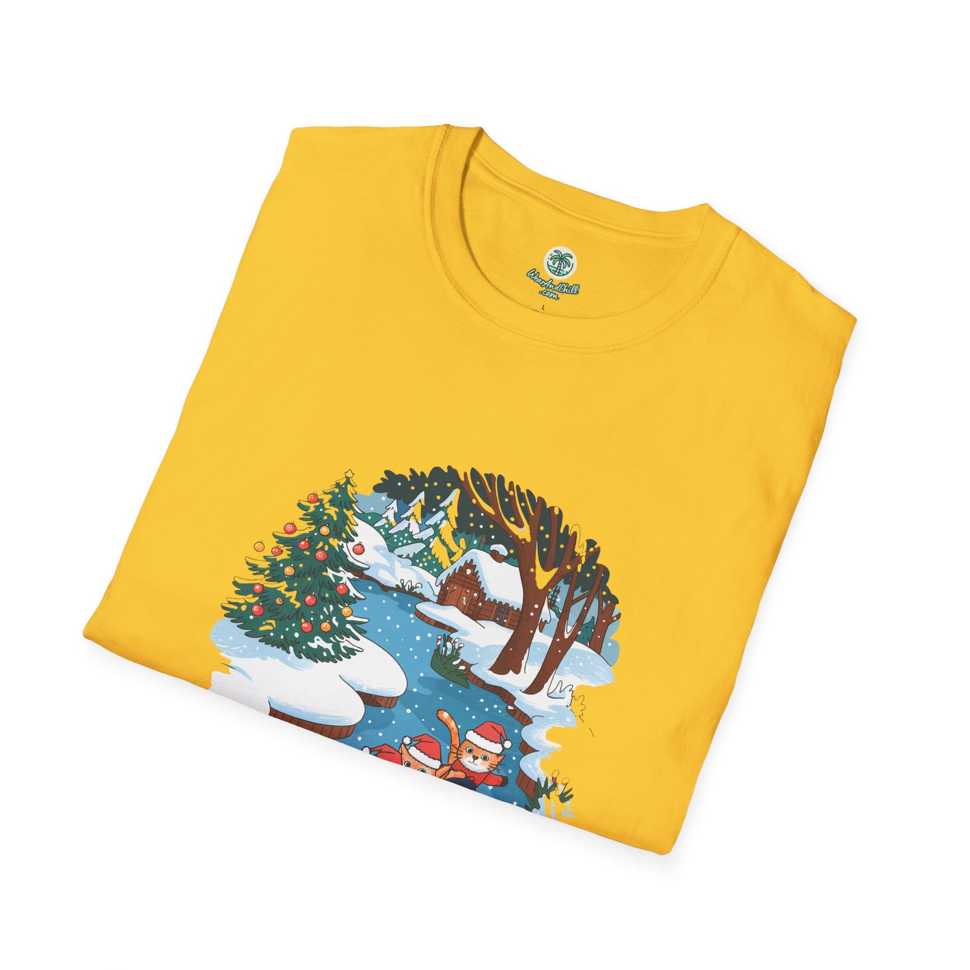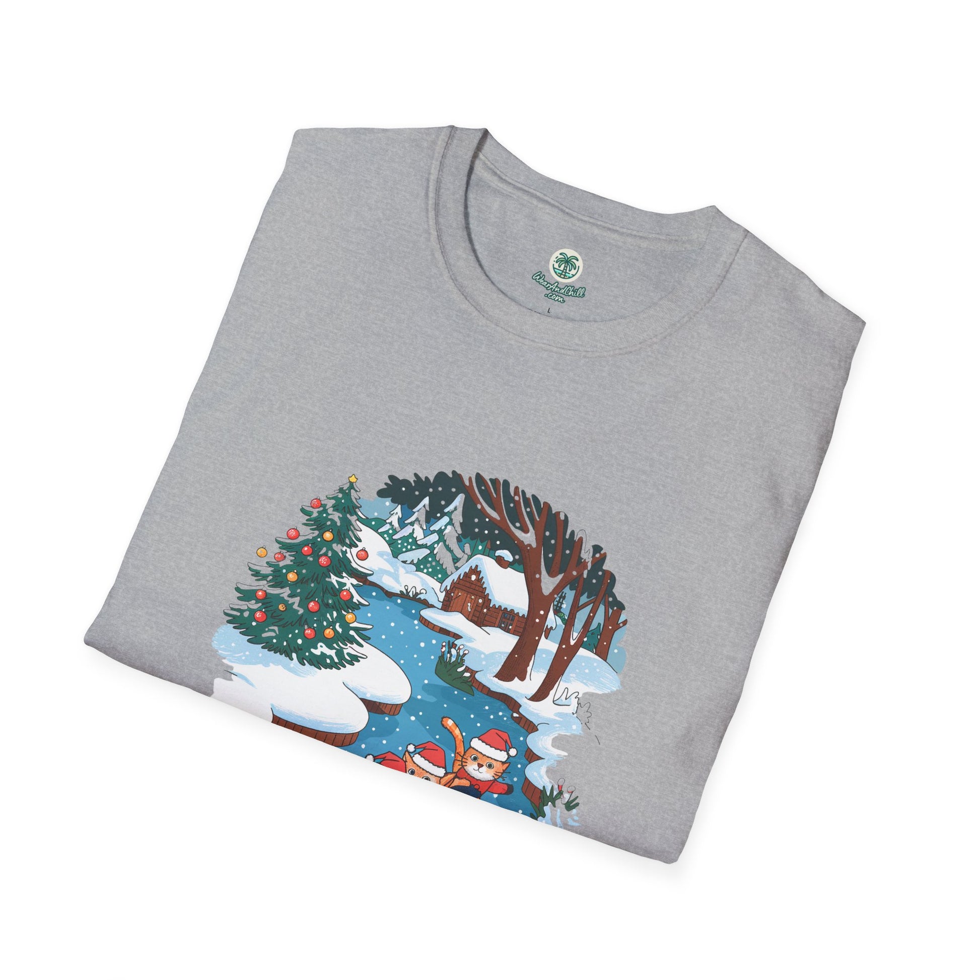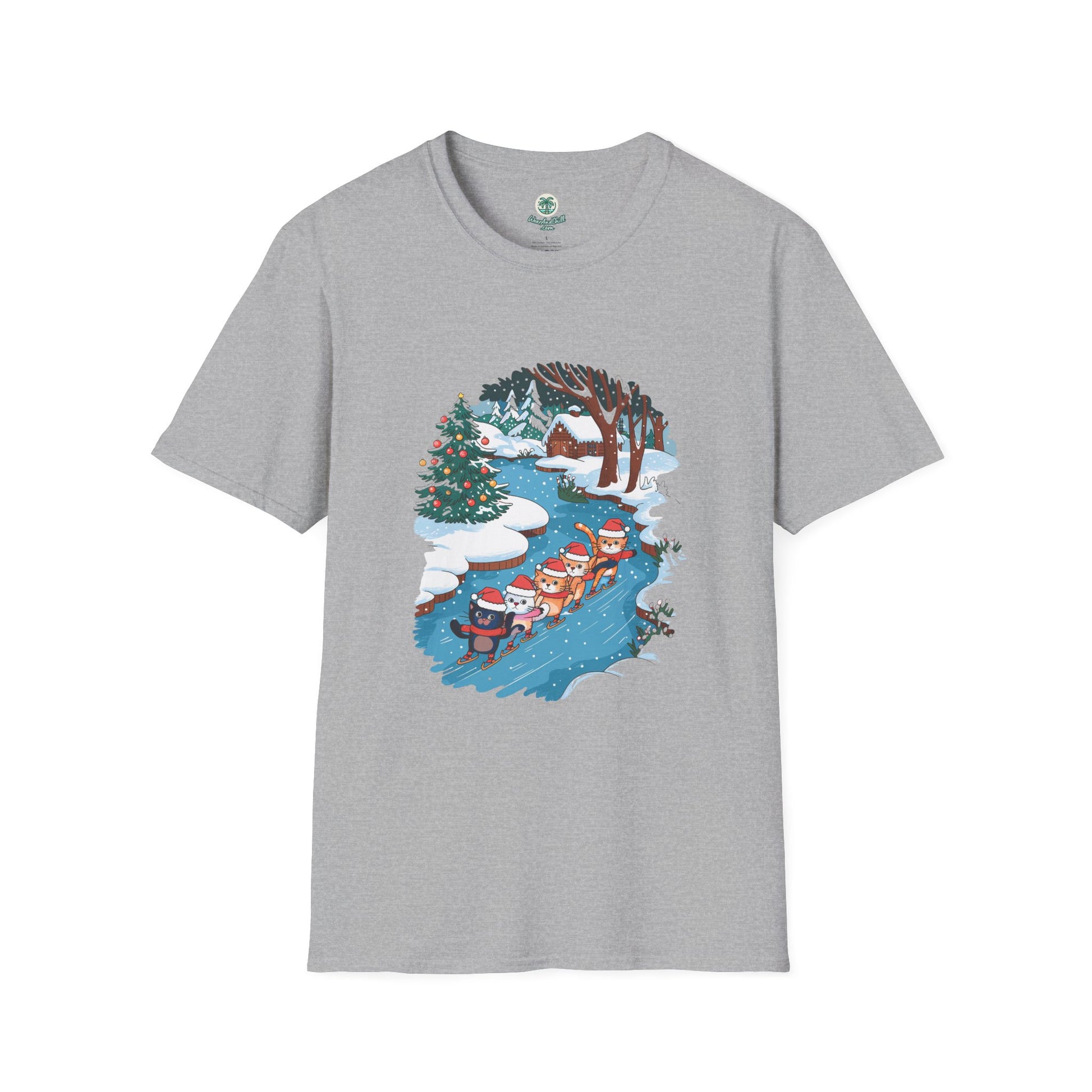 Embrace the magic of winter with our "Winter Scene with Cats Skating on a Frozen Lake" t-shirt from the Christmas & Cats Collection. This whimsical design captures adorable cats gracefully skating under twinkling stars on a sparkling frozen lake, bringing a touch of festive charm and feline fun to your wardrobe. Made from soft, high-quality cotton, this t-shirt ensures comfort and style for the holiday season. Perfect for cat lovers and Christmas enthusiasts, it's an ideal gift or a delightful treat for yourself. Celebrate the joy of winter with this unique and heartwarming piece.