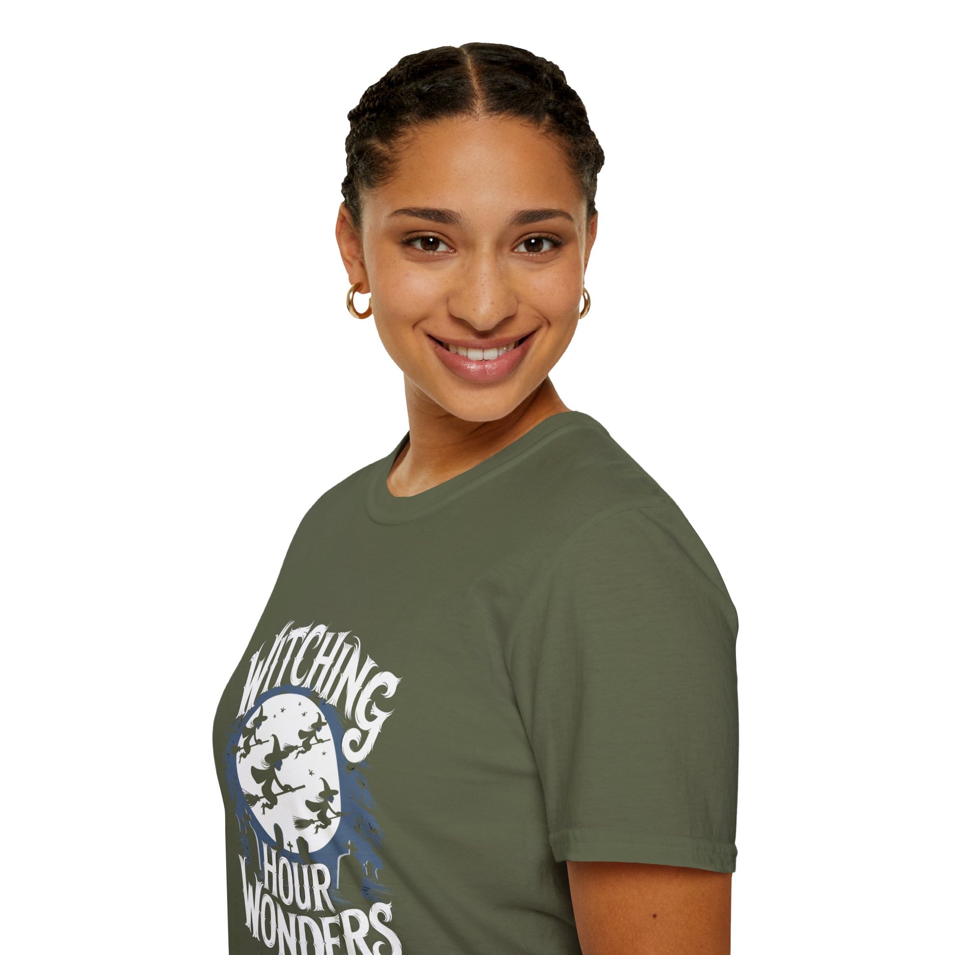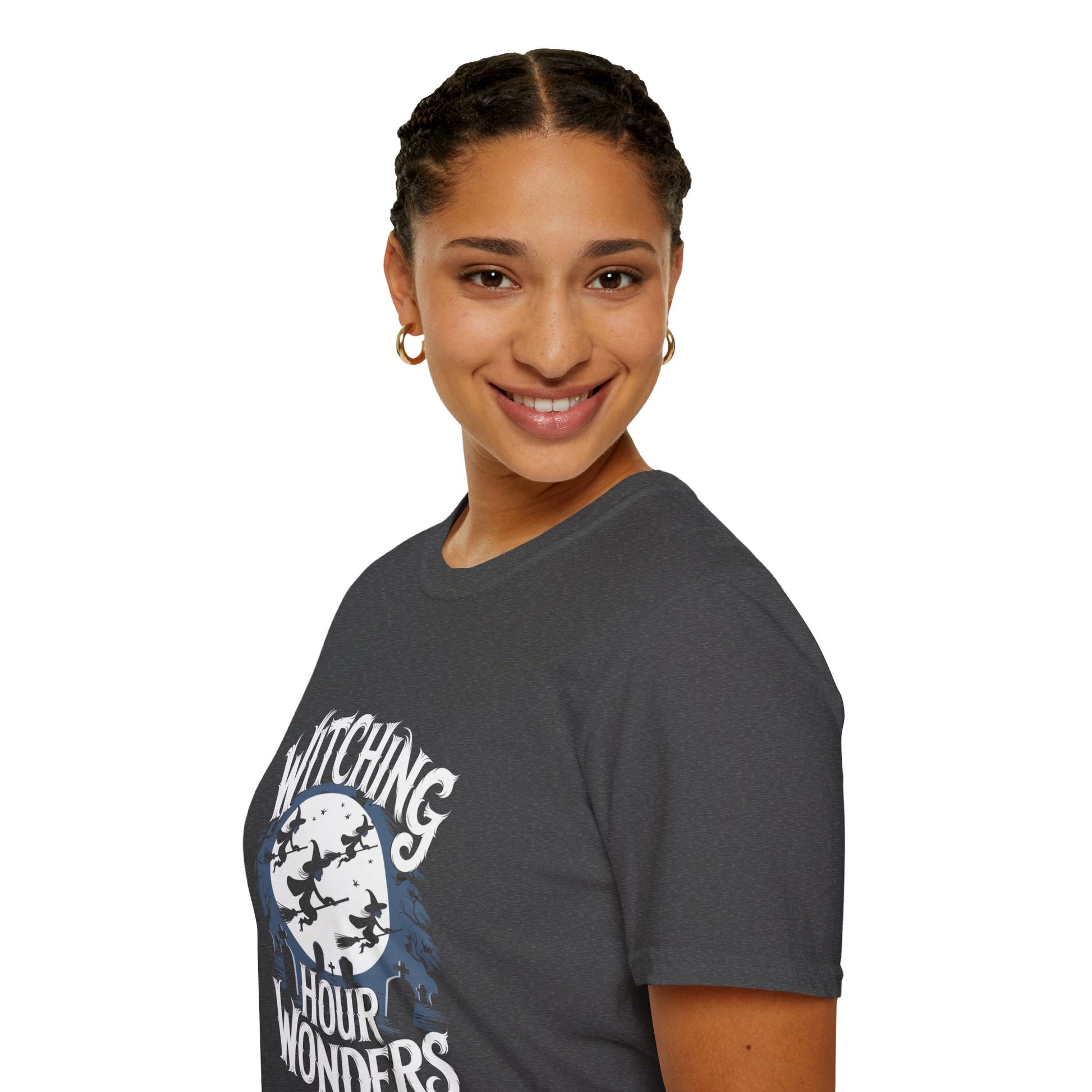 Unleash your mystical charm with our "Witching Hour Wonders" White Lie T-Shirt. This enchanting piece features a captivating midnight design that is both stylish and spellbinding. Crafted from ultra-soft, breathable fabric, it offers unparalleled comfort for all your bewitching adventures. Perfect for Halloween parties, casual outings, or simply embracing your inner witch, this t-shirt is a must-have for any wardrobe. Available in a range of sizes to fit all magical beings. Grab yours today and let the witching hour wows begin!