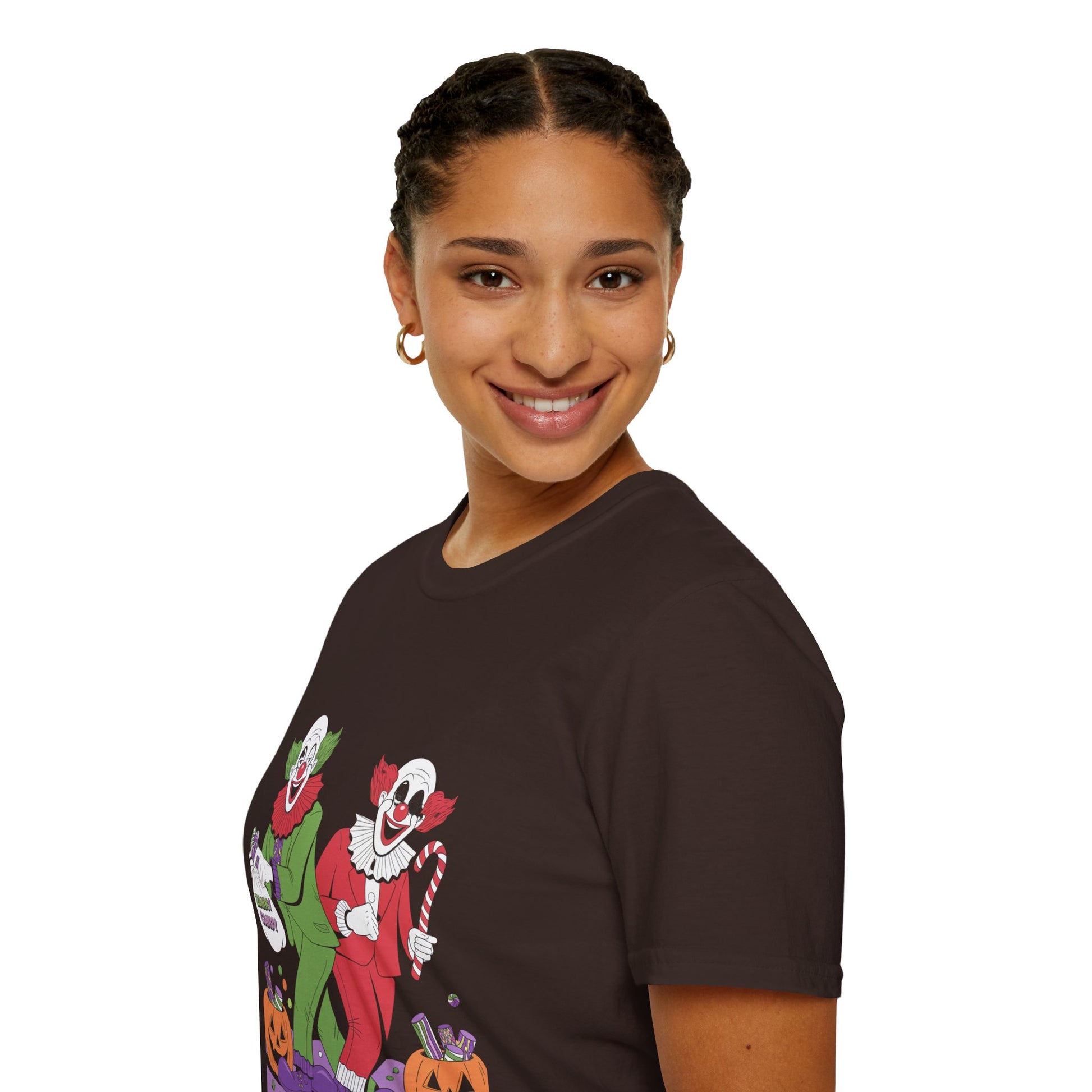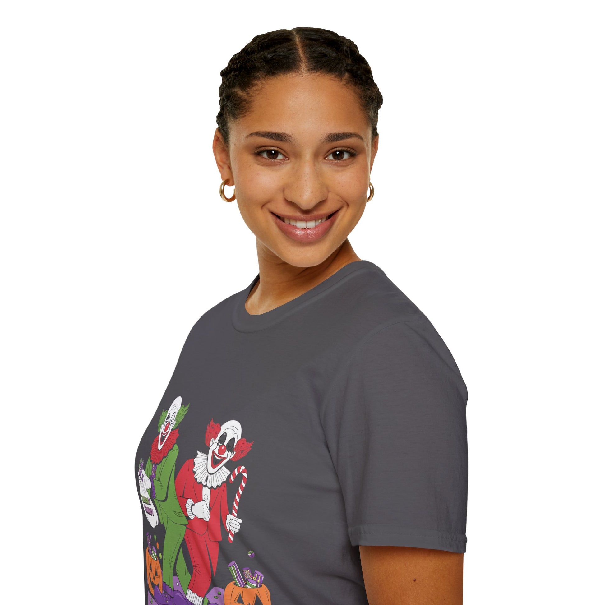 Unveil the fun with our White Lie T-Shirt! Featuring zany clowns handing out candy, this quirky design adds a playful twist to your wardrobe. Made from premium cotton for ultimate comfort, it's perfect for casual outings or standout moments. Express your whimsical side with this unique graphic tee. Get ready to bring smiles and start conversations!